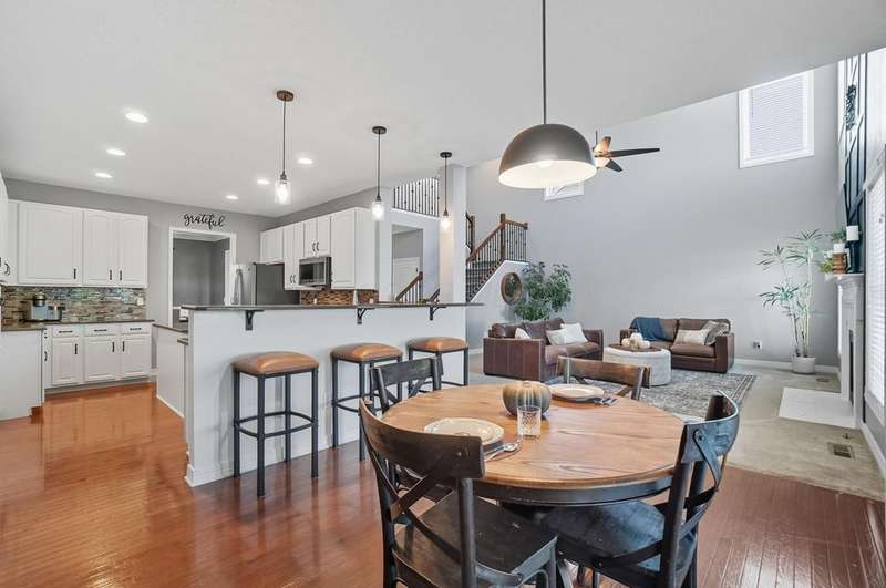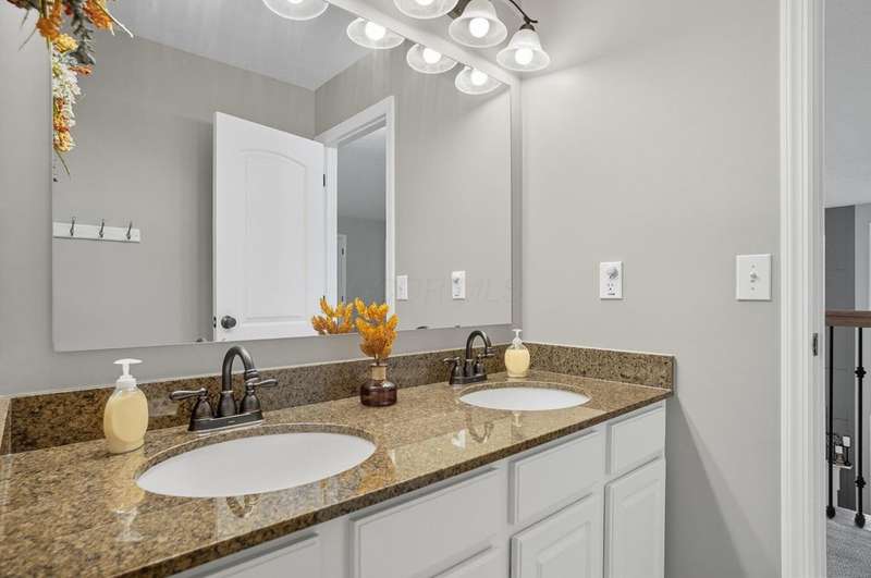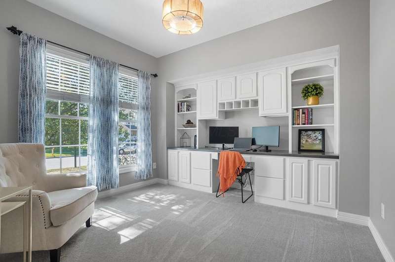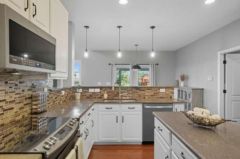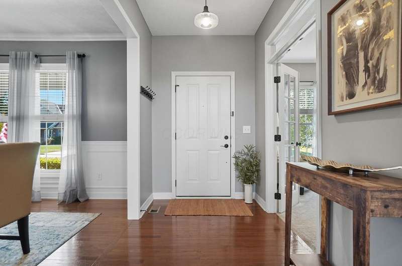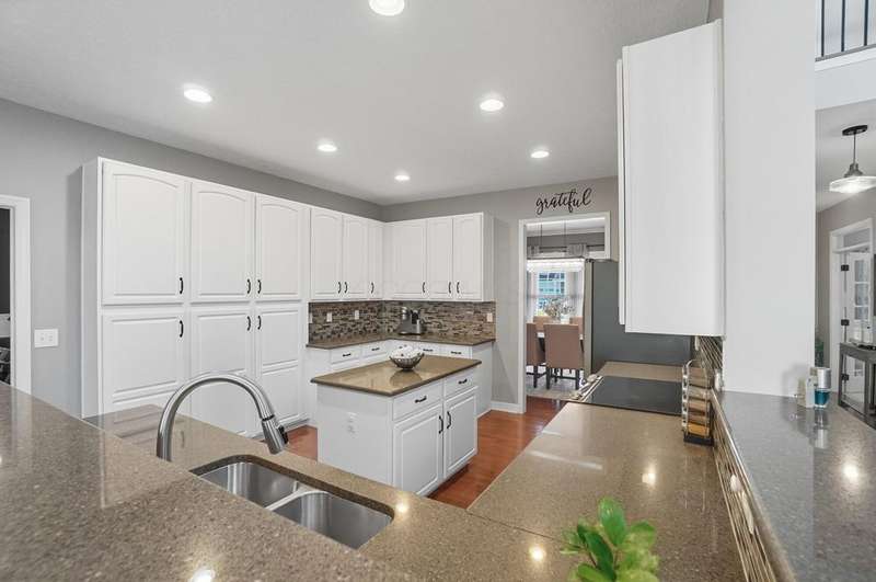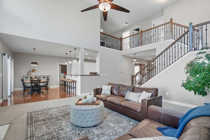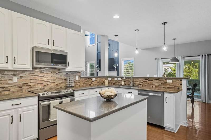 Welcome to this beautiful 4 bedroom, 2.5 baths open concept home with soaring cathedral ceilings! The home is conveniently located in a nice community with a pool, basketball courts, park sidewalks and schools. The home suits today's lifestyles! It offers high end finishes throughout, including hardwood floors., custom woodwork, built ins, glass tile backsplash, granite counters in kitchen & baths, an extra deep garage and a full basement which is already plumbed for a bath. The main level includes a den with built in desk and bookshelves, dining room with wainscoting and crown molding & a two-story great rm. with a feature wall and gas log fireplace. The kitchen offers tons of storage and counterspace along with a center island, granite countertops, new dishwasher, glass tile backsplash and slate appliances. A first-floor utility room too.The upstairs offers a versatile large loft which could be another home office or place to relax. There are 4 bedrooms and 2 full baths. The owner's suite has vaulted ceilings, a deluxe bath with a shower, soaking tub, double sinks and a walk-in closet. The other rooms are a nice size with excellent closet space. The full basement has sturdy built in shelves and tall ceilings with plenty of potential for additional finished space. It currently is being used daily for a play area, workout area and TV room. Outside enjoy the newly screened in porch, brick paver patio and the spacious yard!