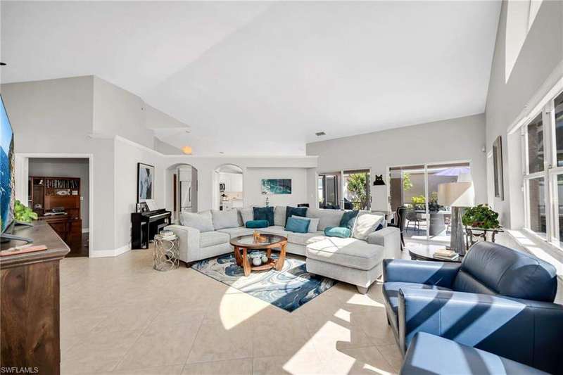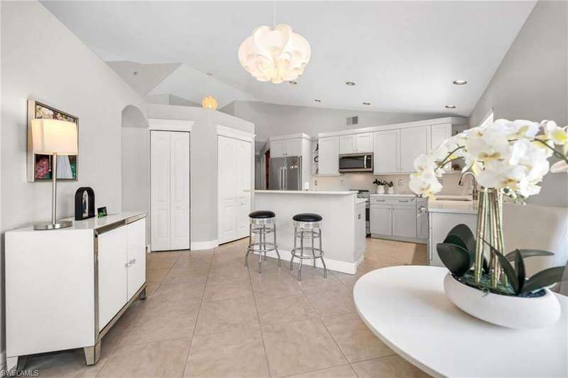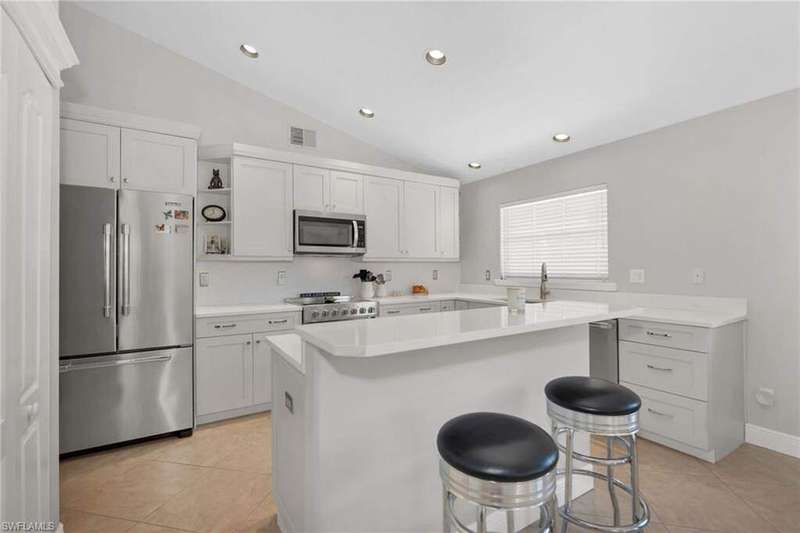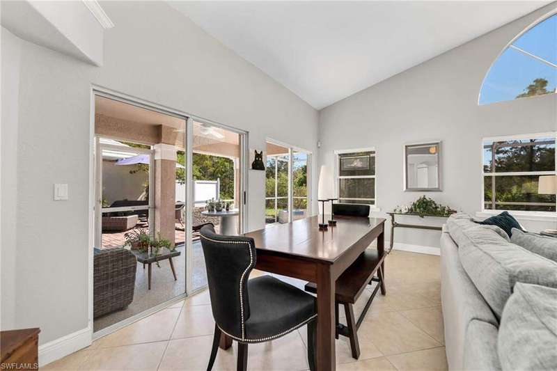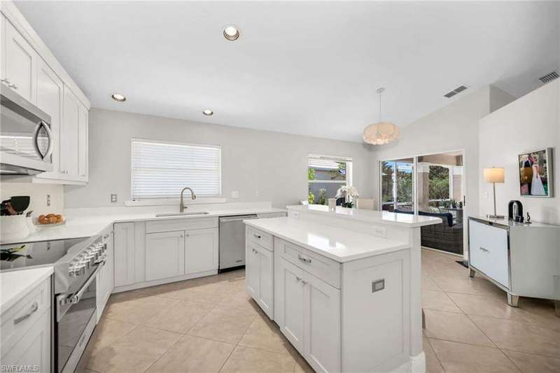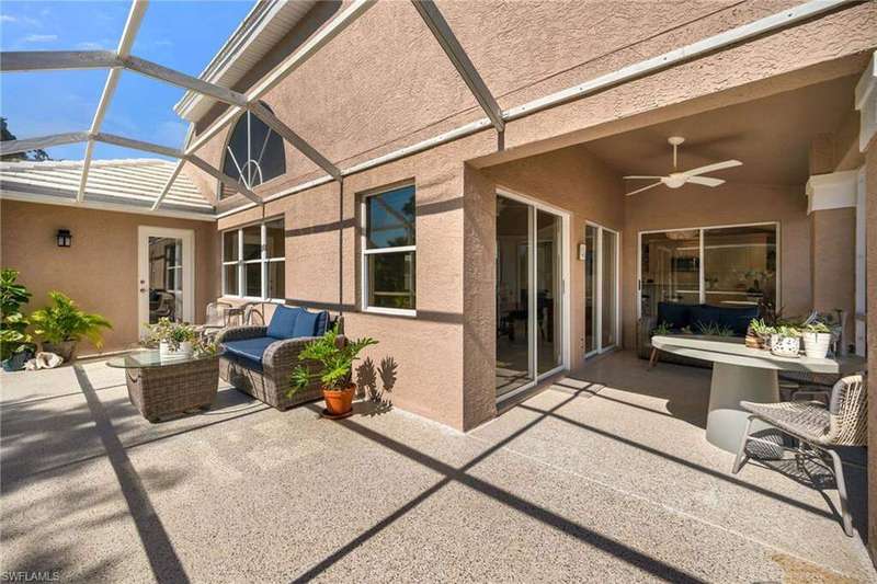 Welcome home to this immaculate and inviting 3-bedroom 2-bath home in the highly coveted Sterling Oaks development. This charming home offers a lovely open floor plan, beautiful large diagonal tile, an updated kitchen with quartz, soft-close cupboards and drawers, stainless Viking appliances and tastefully updated bathrooms. Further enhancing its charm and desirability is the private outdoor patio and wrap-around lanai boasting a gorgeous preserve view to enjoy coffee, adult beverages entertaining family/guests and peaceful tranquility any time of day with the ideal south-eastern exposure. Many other upgrades include a newer roof, completely redone plumbing, a tankless water heater, new fixtures throughout and fresh paint! The immaculate two-car garage adds storage to the already-ample closet space throughout the interior. The white picket fence adds to the charm and fabulous curb-appeal of this gem! Ideally located a short stroll to the beautiful clubhouse, this home offers access to resort-style amenities including a resort-style pool and spa with cabana bar, pickleball and bocce courts, a modern fitness center with locker rooms and sauna, scenic walking paths, a children's play area, and a lovely on-site restaurant offering Friday night dinners, holiday celebrations, and special events. All of this is in an ideal Naples location within minutes of four world-class white sandy beaches, fine dining, shopping, theaters, and endless recreational opportunities. Optional but affordable tennis membership adds even more with 12 Har-Tru courts, professional instruction, clinics, and team play. This delightful home combines comfort, style, and convenience in one of Naples' most desirable communities-an exceptional opportunity to enjoy resort living at its finest. Sterling Oaks is in an X flood zone with low HOA fees. Don't miss this opportunity! It won't last long!
