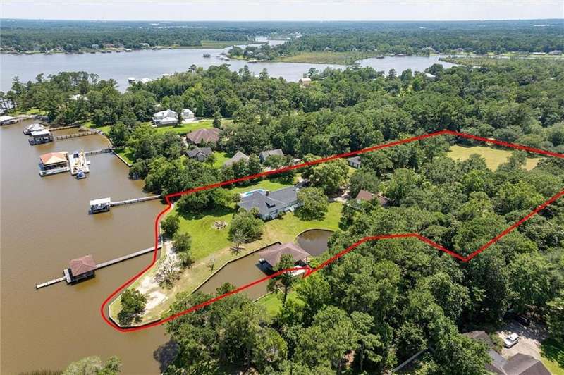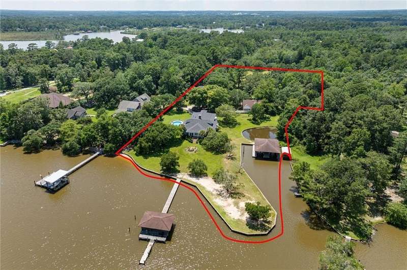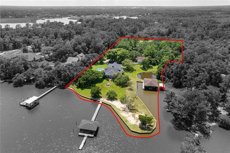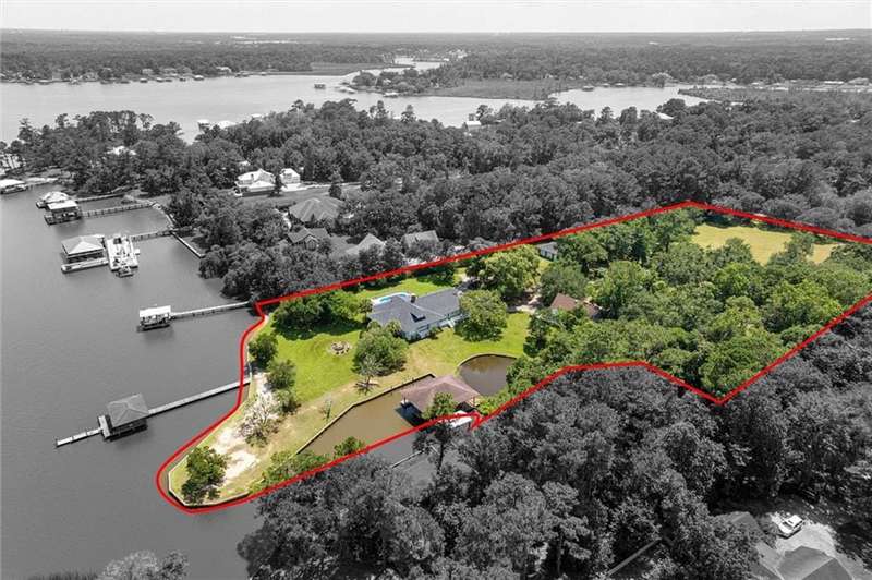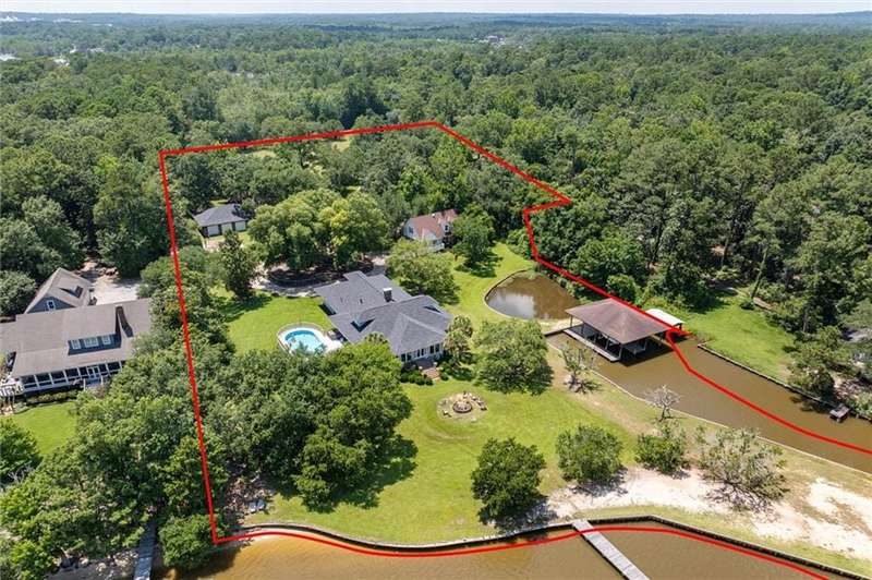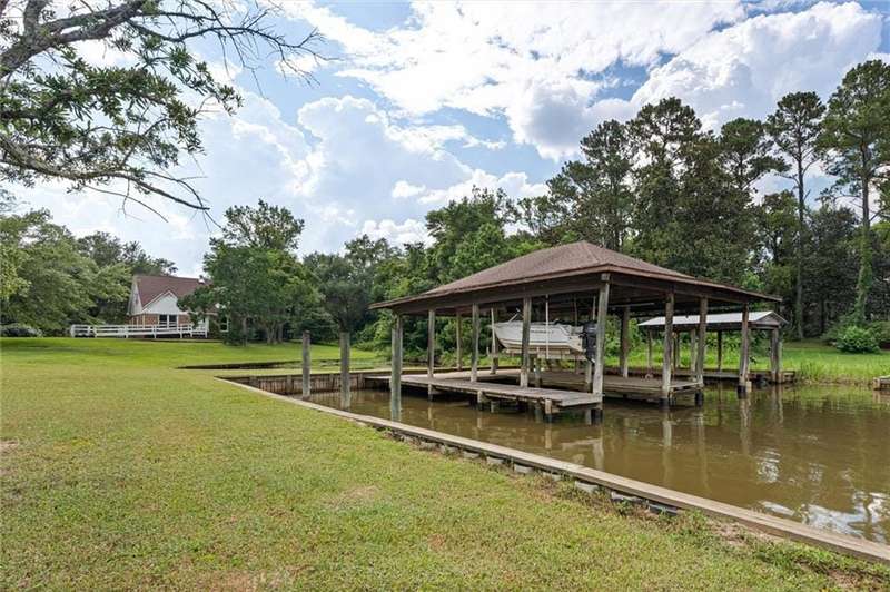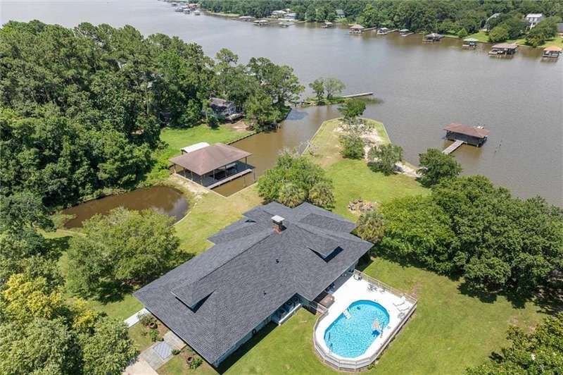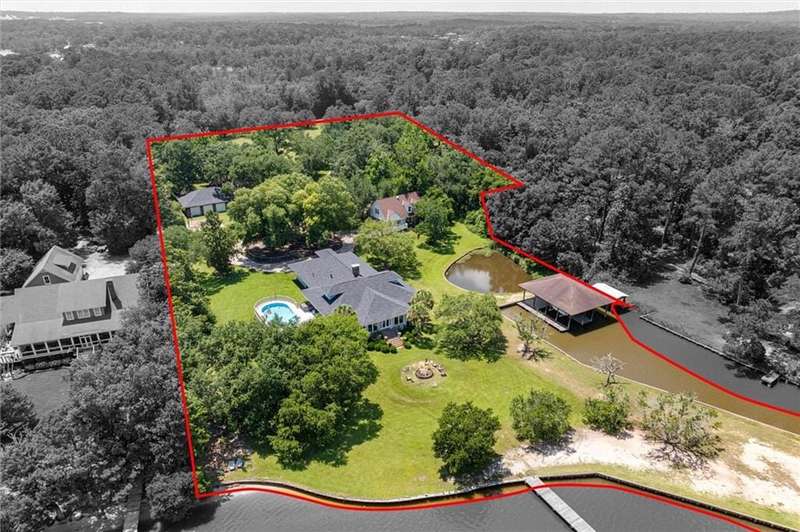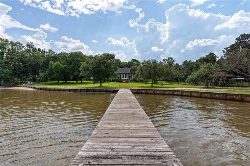 Situated on approximately 7 acres along the wide part of Dog River featuring 368 front footage with a new bulkhead, 215 on the canal and a sandy beach area, this remarkable property offers breathtaking sunsets, serene water views, and lush Southern landscaping. The spacious home features 6 bedrooms and 7.5 bathrooms, an updated kitchen with chefs appliances, and a separate dining areawonderful for entertaining. The main living area features a massive stone fireplace with beautiful views of the river.Step outside to enjoy a huge above-ground swimming pool, a private pond, and a pier with a separate boat lift that accommodates two boats. The grounds are truly a nature lovers dream, filled with mature magnolia trees, blooming azaleas, camellias, gardenias, and vibrant foliage throughout.The possibilities of usage for this special property are unlimited. Subdividing and creating your own special oasis could also be an option. This is a rare chance to own a private waterfront estate with both charm and spaceschedule your showing today! Per seller, 4 new HVACs on property. Sprinkler system attached to new fresh water well. New piers under the house and recently leveled. New roof, 2024. There is a Guardian generator for the main house.Buyer responsible for verifying all measurements and relevant details.