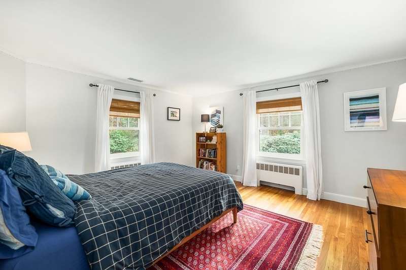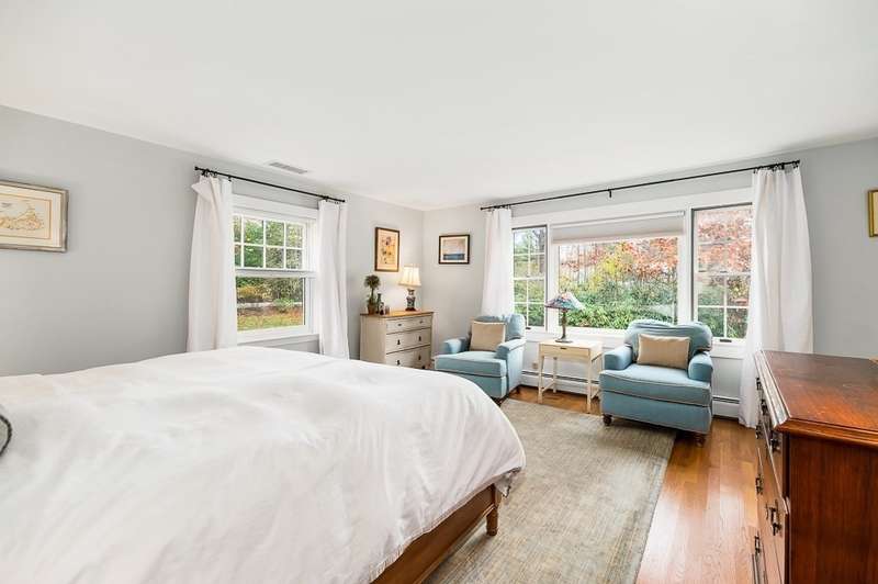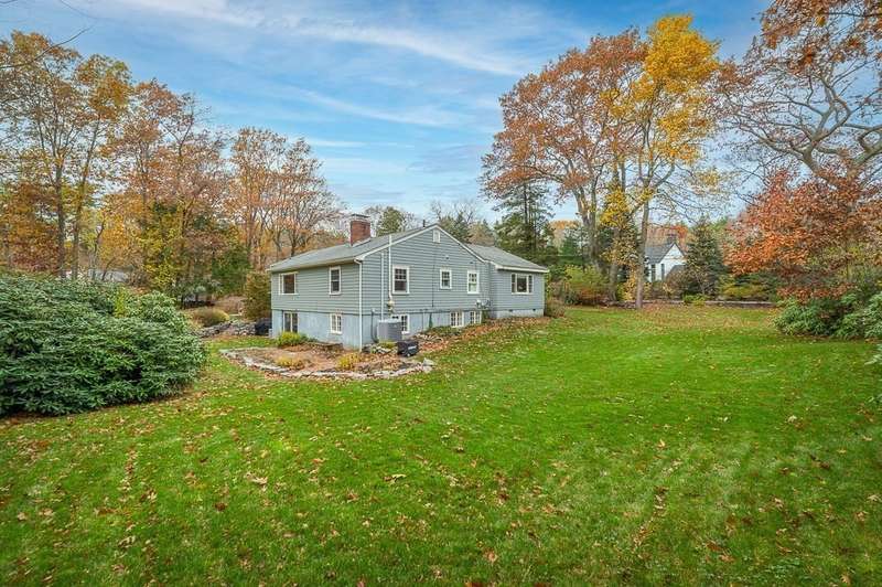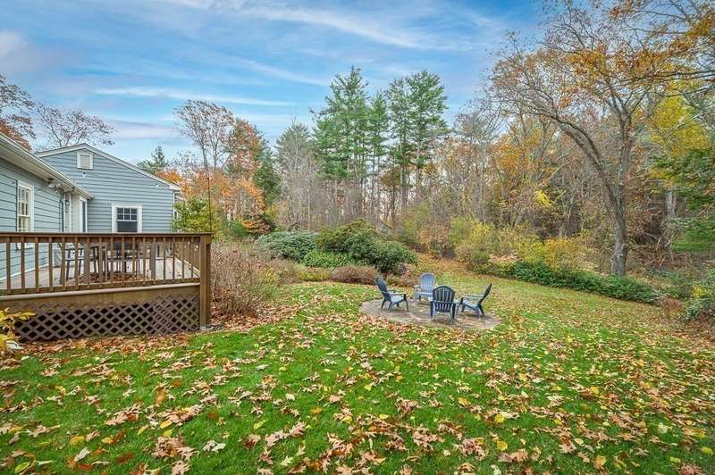 Handsomely maintained and updated 3+ bedroom, 3 bath ranch on 3+ acres with sweeping views and mature gardens. Located in a tranquil, desirable Hamilton neighborhood near town, train, and the middle/high school. The open, flexible floor plan offers easy single-level living plus a mostly finished walk-out lower level. Sunlight fills the rooms and highlights hardwood floors. The kitchen with peninsula seating and side entry/mudroom with built-ins makes entertaining effortless. The dining and fireplaced living room with bay windows overlooks the scenic backyard with mature ever-blooming perennials. Main bedroom with ensuite bath, plus two bedrooms and an office. Lower level includes family room, 2nd fireplace, possible 4th bedroom, bath, and laundry. Central air, two-car garage. Showings begin Sat. 11/15 & Sun. 11/16, 11–12:30.