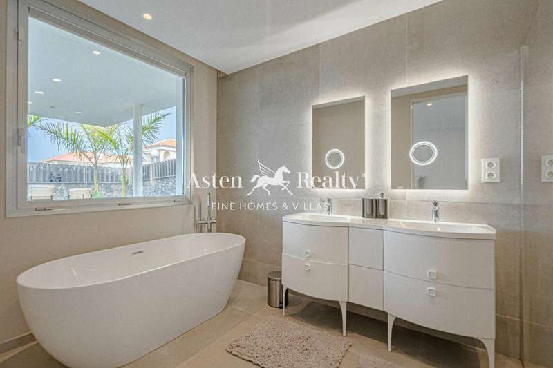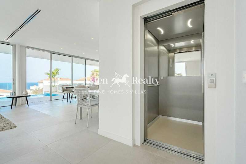 Furthermore, to ensure your comfort and well-being, the villa comes furnished with high quality pieces and boasts intelligent features such as centralised air conditioning, video surveillance and lift access to the upper floor or an elegant staircase, ensuring barrier-free access to all living areas.The exterior of the property is an oasis of tranquillity and privacy, with an outdoor dining area, a living room, a spacious sunbathing terrace, a heated swimming pool and a lush garden inviting you to relax and enjoy the sunny island climate.