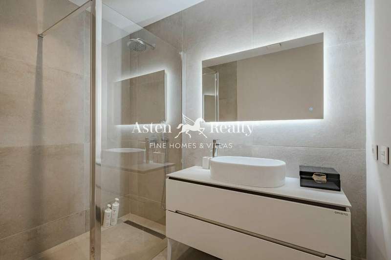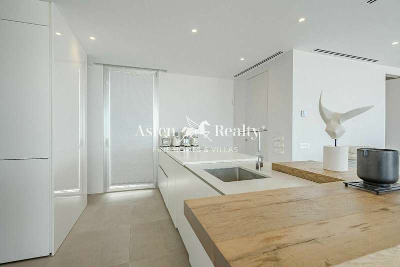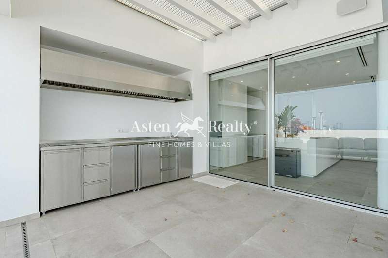 From the elegant entrance hall to the top floor, every corner of the villa will amaze you with its elegance and functionality. On the upper floor, a generous living room with a modern and fully equipped kitchen, a dining room with sea views and a heavenly terrace with heated infinity pool invite you to enjoy unforgettable moments with unsurpassed panoramic views.