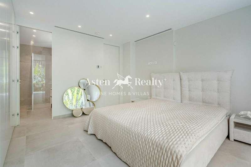 With a modern and elegant design, this dream villa sits on a plot of 523 m2 distributed over two floors. Inside, there are 4 spacious double bedrooms, each with its own private bathroom and direct access to the lush garden through glass doors. The property has been meticulously designed to offer a unique experience of luxury and comfort.