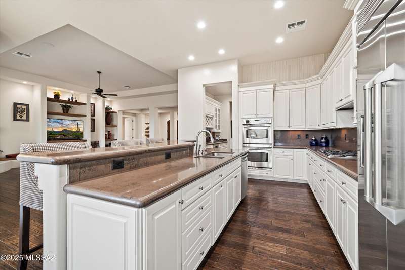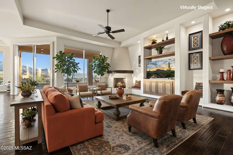 Stunning Golf Course Living in The Preserve! Tierra model w/ casita on a premium golf course lot offering stunning mountain views & easy access to upscale community amenities. Formerly a model home, features a gourmet kitchen w/ premium cabinetry, solid quartz countertops & backsplash, gas range, and a convenient butler's pantry. Spacious great room & den showcase custom built-ins, while the luxurious primary suite includes a soaking tub, oversized shower, makeup vanity, & dual walk-in closets. Guests enjoy a Jack & Jill bath with separate vanities. The 400+ sq ft casita features a fireplace, kitchenette, full bath, and walk-in closet. Outdoor living is ideal w/ a covered patio, pool, & soothing waterfalls. 3-car garage + temperature-controlled workshop complete this must-see home!
