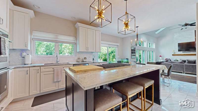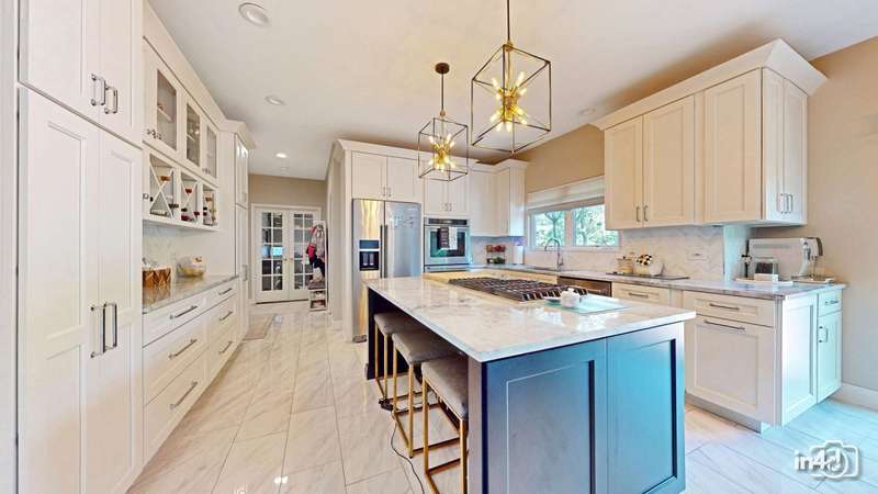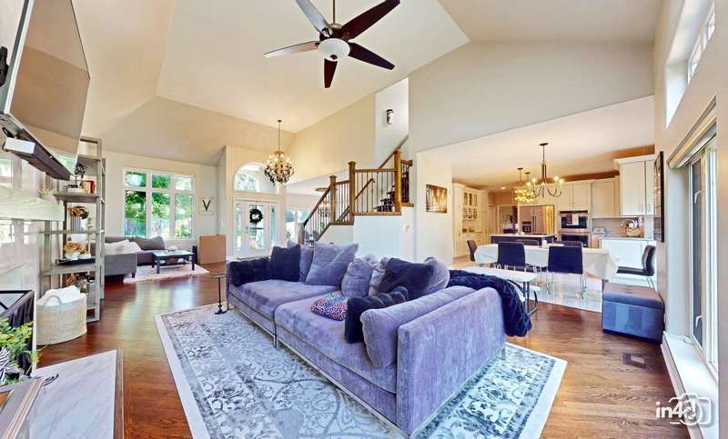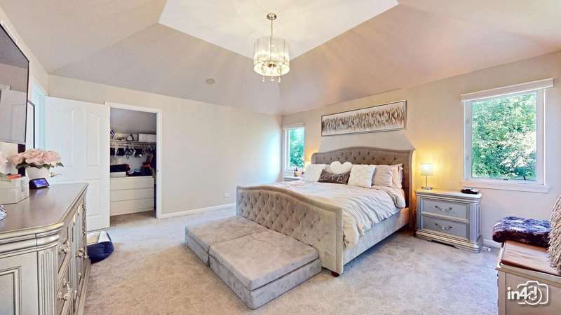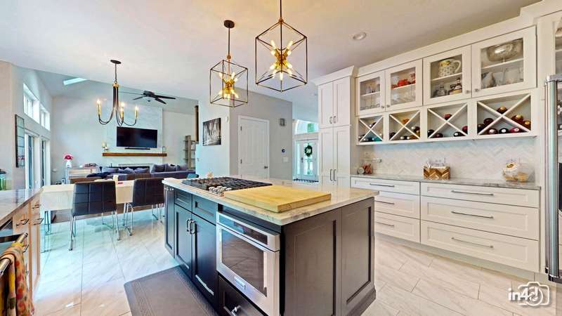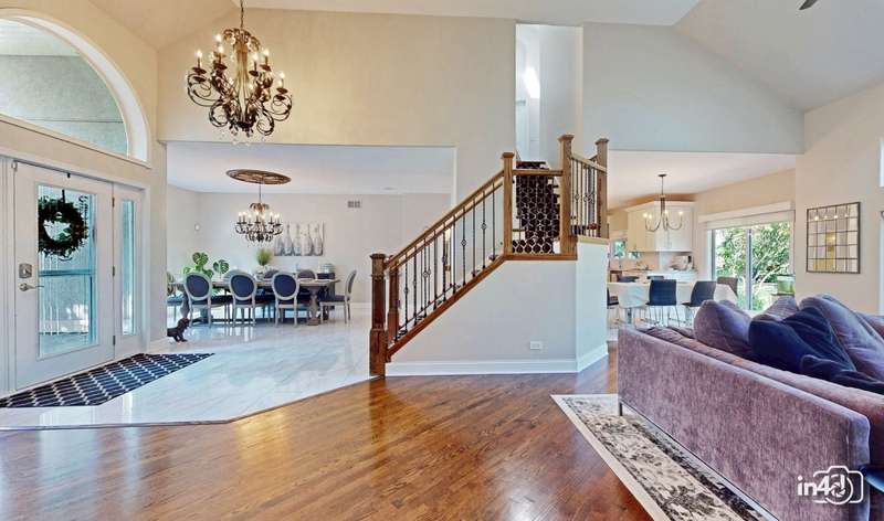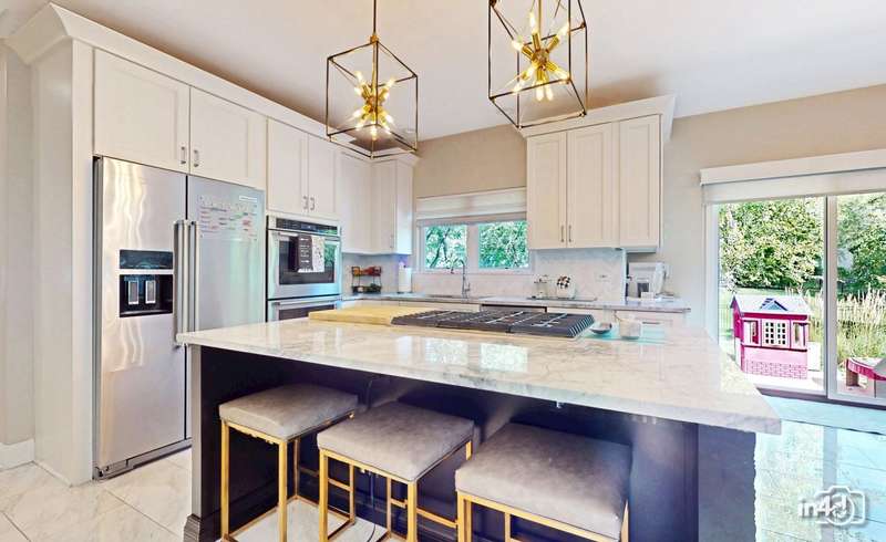 Over $200K in recent renovations have transformed this Steve Carr custom home into a modern showcase. With one of the most unique layouts in Naperville thoughtfully reimagined for today's open concept lifestyle. This 5-bedroom, 3.1-bath residence in Burnham Point delivers new construction luxury in an established, highly desirable community. The first floor has been fully renovated and opened up, with walls and pillars removed to create a seamless flow for everyday living and entertaining. At its heart, the 2022 chef's kitchen features Studio 41 custom cabinetry in crisp white and bold black, striking Super White Premium Quartzite counters, designer lighting, and four built-in wine racks. High-end appliances include a double oven, 5-burner cooktop with downdraft, refrigerator, and dishwasher. A dramatic floor to ceiling tiled fireplace anchors the expansive Great Room, where the Living and Family Rooms combine into one light-filled gathering space. A formal dining room and casual dinette provide options for every occasion, while refinished hardwood floors (2018) and a custom Shaker staircase with iron spindles add timeless architectural detail. The main level also includes a flexible 5th bedroom, currently styled as a California Closets designed office with built-in desks and abundant storage. Upstairs, four generously sized bedrooms with vaulted ceilings include the impressive Primary Suite, offering two walk-in closets (one customized by California Closets) and a spa-inspired bath with dual vanities, soaking tub, and separate shower. An additional full bath with double vanity provides comfort and convenience for family and guests. The fully finished lower level, completed in 2023, expands the living space with brand-new flooring, a stylish full bath, and endless possibilities for recreation, entertaining, or guest quarters. Practical updates add peace of mind: roof (2015), HVAC, humidifier, and water heater (2016). Outside, enjoy a landscaped and fenced yard with patio, sprinkler system, and an oversized 3-car garage outfitted with custom cabinetry repurposed from the original kitchen. Located within the acclaimed Neuqua Valley High School boundary, this turnkey home combines timeless craftsmanship, distinctive design, and every modern convenience, a rare opportunity in one of Naperville's most desirable neighborhoods. (Note: ADT doorbell excluded)
