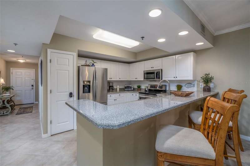 Experience coastal living at its finest in this spacious 3BR/2BA condo in the highly sought after Ocean Walk community of New Smyrna Beach. This beautifully decorated & furnished condo is situated on the 3rd floor across the street from the main clubhouse, pool & fitness center & just a few steps to the private deeded access to the pristine sandy beach! Beautiful tiled floors in all living areas & wood laminate floors in all 3 bedrooms make it easy to clean & relax. Ocean Walk is a premier resort development boasting unmatched amenities, including two gated entrances, clubhouses, pools, spas, gas grills, a sauna, fitness center, tennis courts, shuffleboard, bocce ball, nature trails, & under-building parking. Located in Building 8, which was painted in 2023 & recently completed its SIRS and Reserves Study with no assessments required & reserves are fully funded! Upgrades include crown molding, plantation shutters, the A/C & water heater were replaced in 2022. This pet-friendly building is ideal for full-time living or investment income which allows 7 day minimum rentals. Open floor plan with a split bedroom design, a large laundry room with lots of shelving, private storage closet on the same floor and under building parking. Gourmet kitchen has updated SS kitchen appliances with a breakfast bar & is fully equipped to prepare your favorite dish for family & friends. The living areas flow onto a 25' screened balcony with tiled floor overlooking a sparkling pond with fountain perfect for starting the day with a cup of coffee or watching the sunsets. The primary suite features balcony access, a massive walk-in closet, and an ensuite bath with dual vanities, a garden tub, and a separate shower. With hurricane-impact windows and sliders, this affordably priced 3-bedroom unit offers safety, style, and a luxurious coastal lifestyle. Don't miss this incredible opportunity! Schedule your private showing today.