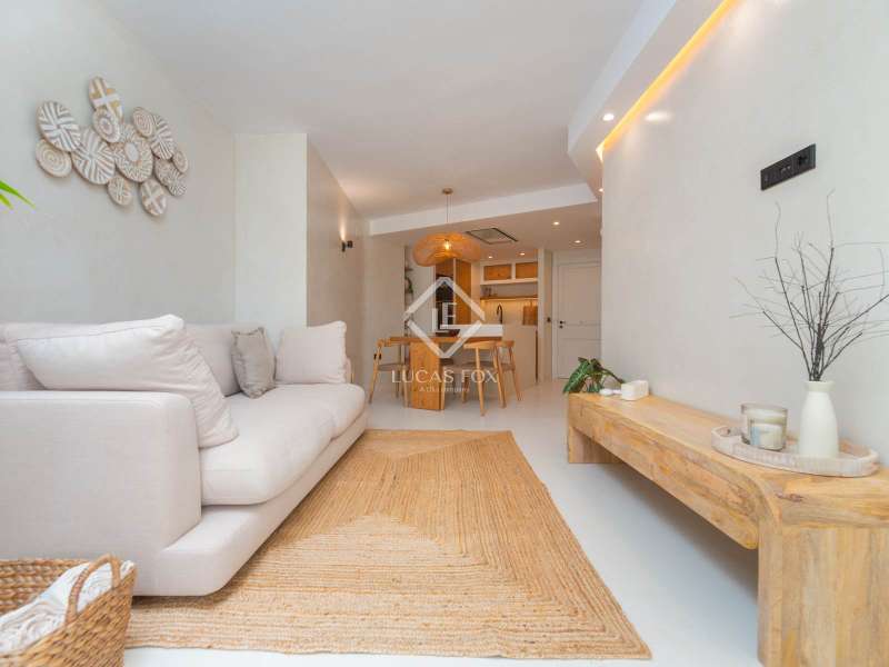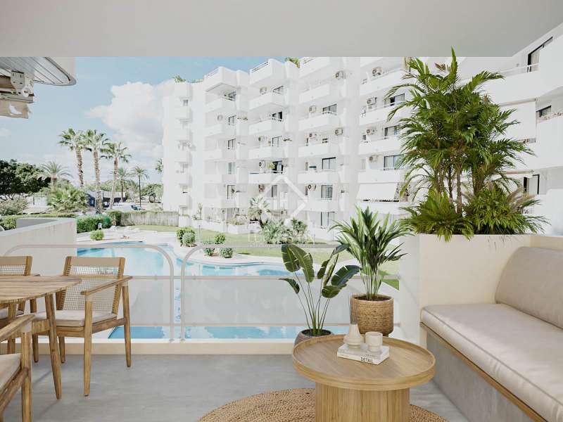 Located in Marina Botafoc, one of Ibiza's most wanted areas, this beautifully finished 65 m² ground-floor apartment offers an exceptional living experience. With a spacious 13 m² terrace with amazing views, this property is perfect for those who appreciate outdoor space in a prime location. The apartment features a generous bedroom with built-in wardrobes, a stylish open-plan living area with a modern kitchen, a luxury bathroom with a bath and walk-in shower and high-quality finishes throughout. From the sunny terrace you are overlooking the communal garden and pool area, while the ground-floor location provides easy accessibility and a seamless connection between indoor and outdoor living. The apartment is surrounded by some of Ibiza’s most renowned hotspots, including Passion Café, Lio, Zuma and Cappuccino, making it a dream setting for those who appreciate fine dining, nightlife, and breathtaking marina views. Talamanca Beach is only a short 5-minute walk, as is Ibiza Town, while the airport is reachable within 15-20 minutes. Currently the apartment is being renovated to the highest standards and will be ready to move in May 2025. The property will be delivered fully furnished and decorated, as shown in the renders. All furniture and accessories are included in the sale, ensuring a turnkey home! This is a rare opportunity to own a refined residence in one of Ibiza’s most desirable neighbourhoods. Contact us for more details or to arrange a viewing.