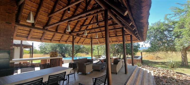 For the golf enthusiast!! 2.6 Weeks in magnificent 4 bedroom lodge in Zebula Private Golf Estate. Situated near Bela Bela, a mere 2 hours from Gauteng. An entertainers dream..... huge outside patio with braai facilities and pool. All bedrooms are beautifully decorated, all en-suite and very private. Open lounge, dining area and kitchen for those late night 'kuiers'. Use of 2 golf carts included. Phone now for you share in the bushveld.