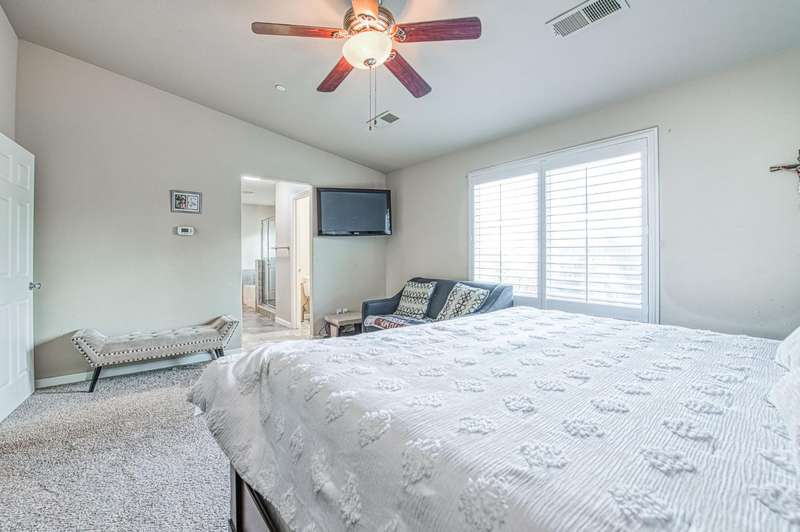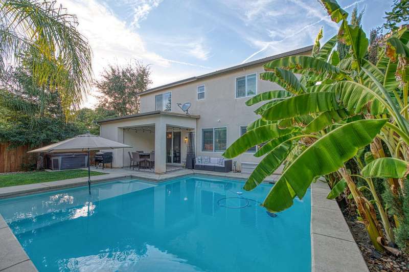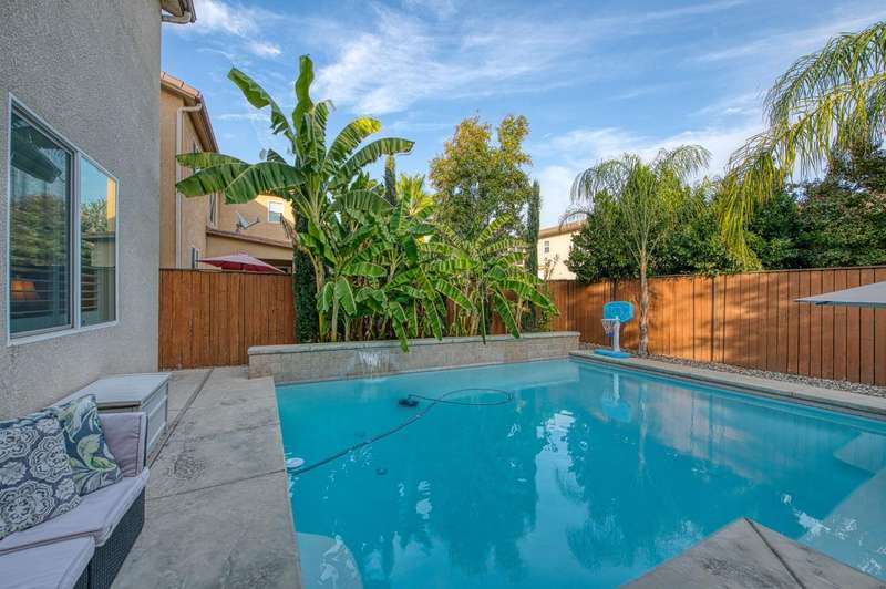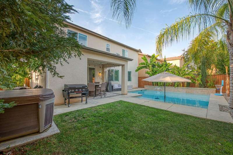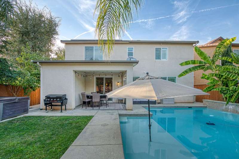 Welcome to this beautifully designed 4-bedroom, 3-bathroom gem located on a prime corner lot in the highly desirable Harlan Ranch community. From the moment you step inside, you'll be greeted by a thoughtfully designed layout that blends elegance with everyday comfort.An isolated bedroom and full bathroom just off the entryway offer ideal guest quarters or a private office space. The heart of the home is the stunning kitchen, complete with granite countertops, stainless steel appliances, and not one, but two pantriesperfect for those who love to cook and entertain. The kitchen opens seamlessly into an expansive great room flooded with natural light, creating an inviting atmosphere for gatherings big or small.Upstairs, a spacious loft provides a second living area, perfect for movie nights, game days, or a cozy reading nook. Just off the loft, you'll find the luxurious primary suitea true retreat with a generously sized bedroom, spa-like bathroom. Add that with two additional bedrooms, a full bath, and a conveniently located laundry room to complete the upper level.The backyard is a showstopper, featuring a sparkling pool & spa, a covered patio perfect for outdoor dining, and beautifully designed landscaping that maximizes both space and privacy.With an 8 kW owned solar system under NEM 2, this home offers energy efficiency and long-term savings. Located just steps from scenic trails, Bud Rank Elementary, and the Harlan Ranch clubhouse, you'll love the lifestyle this community provides.Modern comfort, prime location, and an entertainer's dreamthis is the one you've been waiting for. Don't miss your chance to call it home!