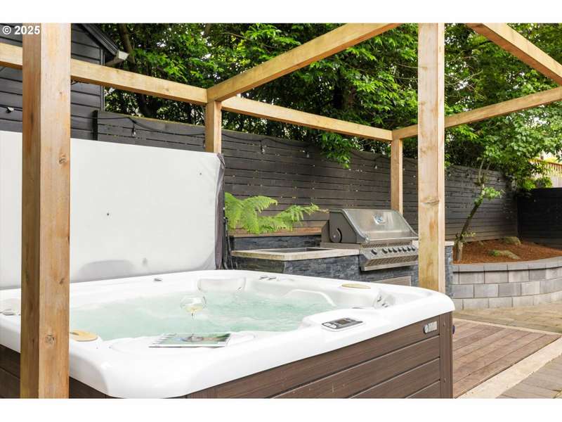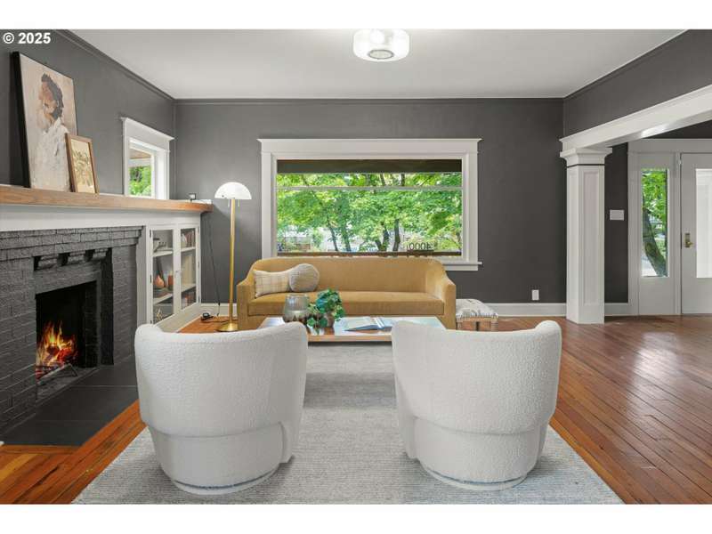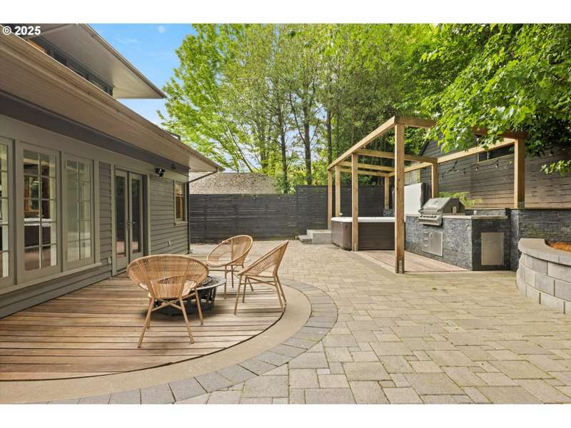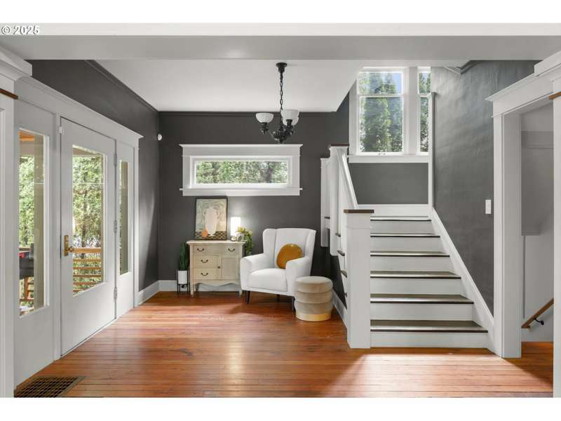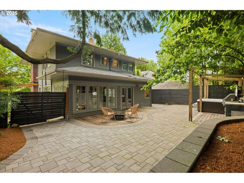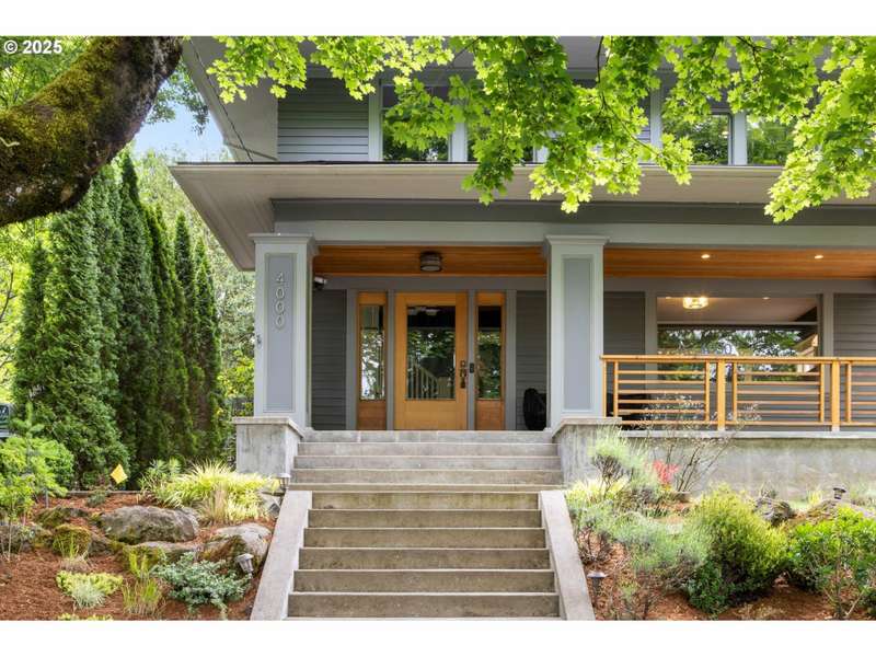 Perched above a quiet tree-lined street in Laurelhurst, this iconic 1917 craftsman has been exquisitely reimagined for modern living while honoring its architectural heritage. The broad wrap-around porch, warm tongue & groove ceilings, and stamped concrete staircase set the tone for head-turning grandeur. Inside, rich period details have been thoughtfully preserved and playfully added onto. At the heart of the home, the chef’s kitchen balances form and function. Custom solid walnut cabinetry—including a walk-in pantry with vintage icebox handle, exposed brickwork and professional-grade appliances including a stainless-steel Viking cooktop, hood vent, and oven. Continuous grain reclaimed barn wood add edge as accent details. French doors lead into a light-filled sunroom with garden views. Upstairs, three gracious bedrooms—including a serene primary suite with a spa-inspired bath—offers a tranquil retreat. A second full bathroom features a walk-in shower, soaking tub, dual sinks and integrated laundry for everyday ease. Heated bathroom floors, new walnut doors & hardware add continuity between the floors. The fully finished lower level, with its own exterior entrance, offers exceptional versatility: ideal for guest quarters, ADU possibility, or multi-generational living. Complete with a family room, comfortable bedroom/den, full bathroom, ample storage & plumbed for a kitchenette. This recently renovated, fully-fenced backyard is your own urban sanctuary. Clean-lined hardscaping and stunning ipe (Brazilian) decking offer year-round low maintenance while providing expansive entertaining capabilities. Dine al fresco alongside the built-in BBQ & prep sink, twilight cocktails underneath the pergola, and unwind with a hot tub soak. Ideally situated with close proximity to the beloved Laurelhurst Park, top-rated schools and Portland’s culinary treasures. This one-of-kind home—where every detail has been considered and every space tells a story—is ready for the next chapter. [Home Energy Score = 1. HES Report at https://rpt.greenbuildingregistry.com/hes/OR10238295]