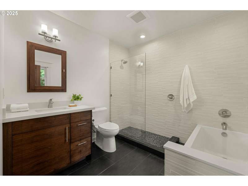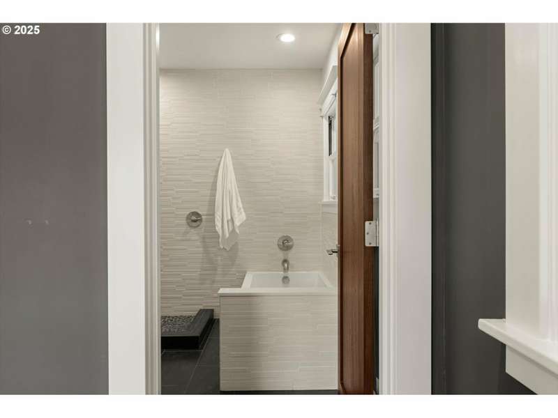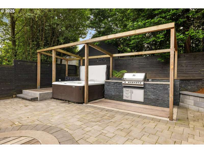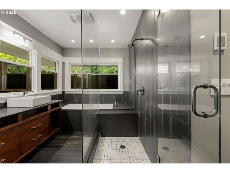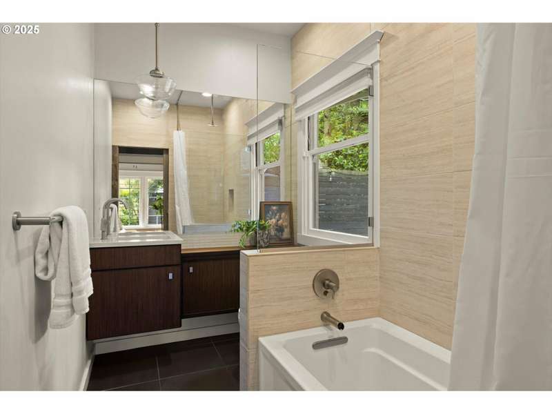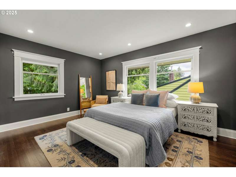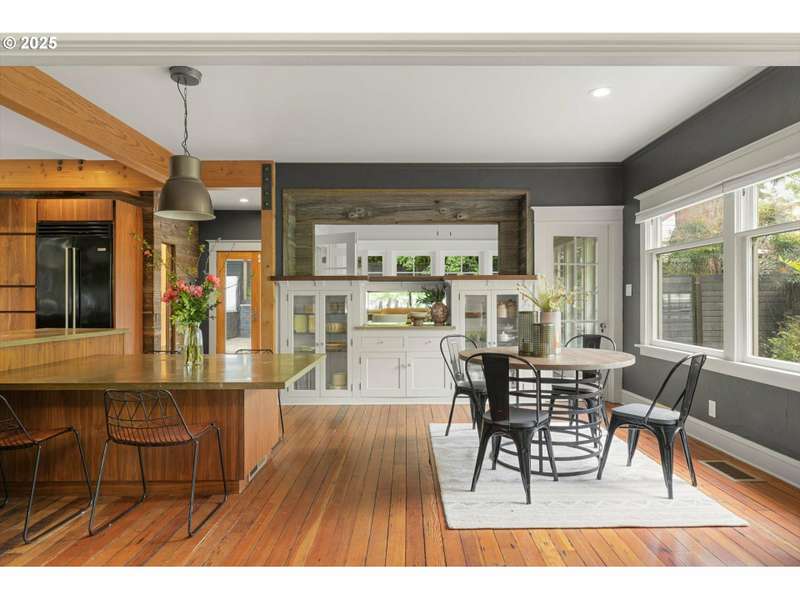 Perched above a quiet tree-lined street in Laurelhurst, this iconic 1917 craftsman has been exquisitely reimagined for modern living while honoring its architectural heritage. The broad wrap-around porch, warm tongue & groove ceilings, and stamped concrete staircase set the tone for head-turning grandeur. Inside, rich period details have been thoughtfully preserved and playfully added onto. At the heart of the home, the chef’s kitchen balances form and function. Custom solid walnut cabinetry—including a walk-in pantry with vintage icebox handle, exposed brickwork and professional-grade appliances including a stainless-steel Viking cooktop, hood vent, and oven. Continuous grain reclaimed barn wood add edge as accent details. French doors lead into a light-filled sunroom with garden views. Upstairs, three gracious bedrooms—including a serene primary suite with a spa-inspired bath—offers a tranquil retreat. A second full bathroom features a walk-in shower, soaking tub, dual sinks and integrated laundry for everyday ease. Heated bathroom floors, new walnut doors & hardware add continuity between the floors. The fully finished lower level, with its own exterior entrance, offers exceptional versatility: ideal for guest quarters, ADU possibility, or multi-generational living. Complete with a family room, comfortable bedroom/den, full bathroom, ample storage & plumbed for a kitchenette. This recently renovated, fully-fenced backyard is your own urban sanctuary. Clean-lined hardscaping and stunning ipe (Brazilian) decking offer year-round low maintenance while providing expansive entertaining capabilities. Dine al fresco alongside the built-in BBQ & prep sink, twilight cocktails underneath the pergola, and unwind with a hot tub soak. Ideally situated with close proximity to the beloved Laurelhurst Park, top-rated schools and Portland’s culinary treasures. This one-of-kind home—where every detail has been considered and every space tells a story—is ready for the next chapter. [Home Energy Score = 1. HES Report at https://rpt.greenbuildingregistry.com/hes/OR10238295]