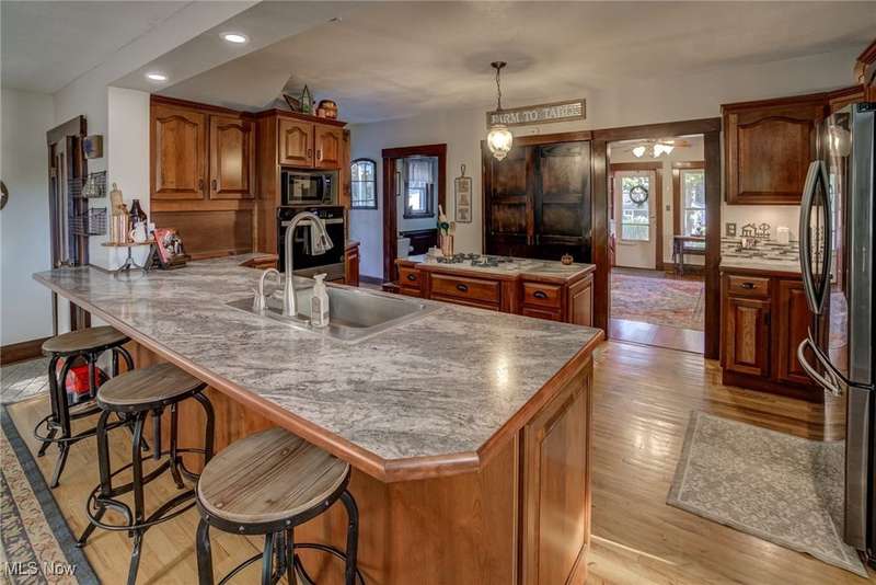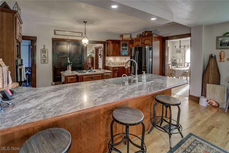 Enchanting Victorian farmhouse, situated on a sprawling 1.8-acre, fully fenced, double lot! This utterly charming home and property has undergone quite a few updates in the last two years! The seller fenced in the entire yard, added a chicken coop with run, ?updated and stained the deck, replaced appliances, and updated the beautiful full bath! It's important to note that there is room to turn the first floor powder into a full bath, where there is currently laundry. With a spacious interior layout & abundant outdoor living space, this home offers a true storybook experience. Just imagine waking up to let the chickens out, grabbing some eggs, and enjoying your coffee while you look out over the grounds. This stunning Victorian offers almost 3000 sq feet of living space, including 3 bedrooms, 1.5 baths, & a walkout basement. There is a formal front entrance & an informal side entrance into a beautiful foyer, which opens directly into the kitchen. The eat-in kitchen is adorned with new stainless appliances, cherry cabinets, and new pantry for ample storage. This space is incredibly cozy with an inviting, open dining area. The dining & living room enjoy an abundance of natural light, a wood-burning fireplace, and beautiful wooden pocket doors at the staircase. This is one of two staircases, making for a natural flow through the home. Upstairs you'll find 3 generously and similarly sized bedrooms, along with a newly updated, full bath!. This home is a testament to the joy of living there, and the care the owners have taken over the years. It features other recent additions such as a 4-car tandem garage (24x40, 2018), windows(2021), roof(2018), HWT(2019), & two-tier deck(2022) that overlooks the lush landscape. With a shed, picnic area, & a multitude of upgrades, this home embodies a harmonious blend of old-world charm and modern convenience. Don't miss the chance to make this dream a reality.