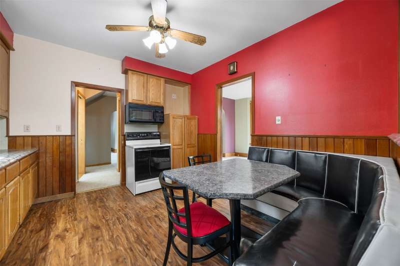 Okay, hear me out—this turn-of-the-century charmer on 11th Avenue might just steal your heart. It’s tucked near the top of a quiet, tree-lined street, and from the moment you step onto that open front porch (the perfect spot for morning sunrises and a cup of coffee), you can feel the good energy this home gives off. It’s full of warmth and memories from the families who’ve lived here before—and it’s been lovingly cared for by the same owner for the past 32 years.Inside, the light is just right, and the woodwork? Absolutely stunning—like the kind you only find in homes built with real craftsmanship and care. The living and dining rooms flow together with a cozy, welcoming feel, and the kitchen has plenty of cabinet and counter space plus a built-in breakfast nook that’s just made for slow mornings. You’ll also love the convenience of main-floor laundry and a handy half bath.Upstairs are three comfortable bedrooms and a full bath, each with that same timeless character. The basement adds another half bath, room for hobbies or a hangout spot, and plenty of space for storage.Step outside and you’ll see why this one feels so special. The back deck is the place for sunset dinners or just sitting with a glass of wine at the end of the day. The yard feels private and peaceful with its mix of trees and shrubs, and the garage is nice and roomy—perfect for cars, bikes, and weekend projects. The wide driveway gives you plenty of parking, too. Oh - and there is already a perfect spot for your garden!It’s the kind of home that just feels good the minute you walk through the door. Set in a friendly, small-town community with schools right in town and a sweet little main street nearby, this place has all the right vibes...If you know, you know. *** Buyers should verify any county or city restriction & any offer will require a 24 hour timeframe to respond*** New microwave is on order to replace the current one in the kitchen.The average electric and natural gas combined: $226/month. Buyer should verify property taxes, sq. ft. or any easements themselves.
