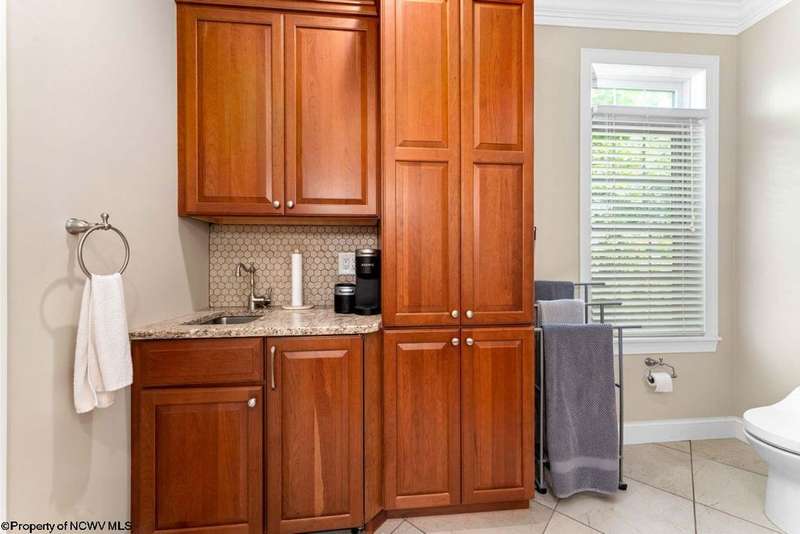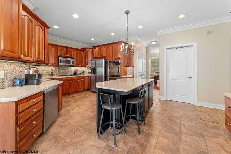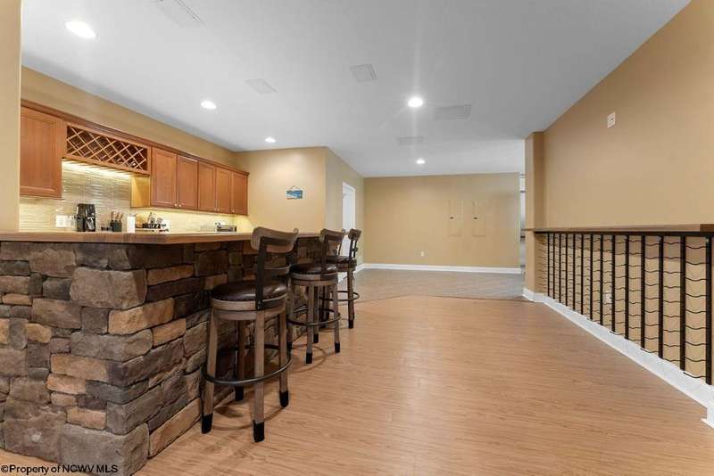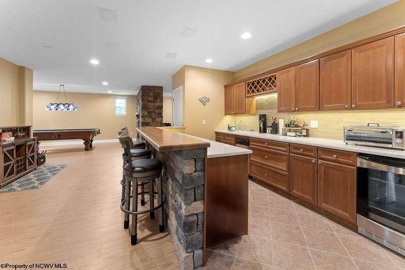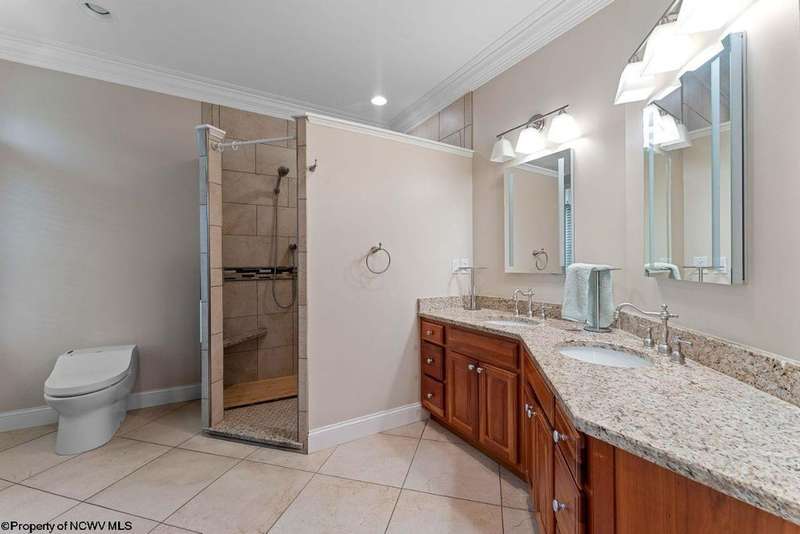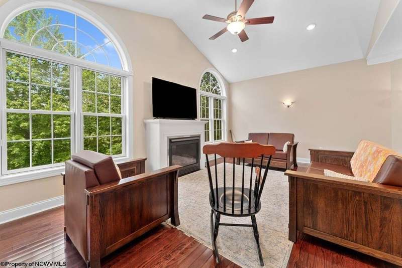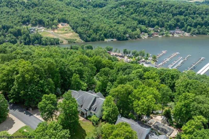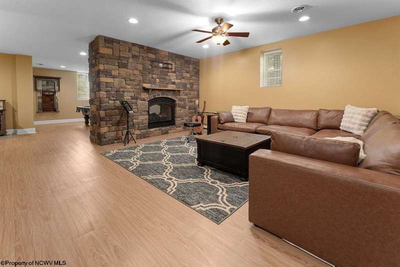 Nestled on a serene, wooded lot within the gated community of Ices Ferry, this custom retreat offers breathtaking seasonal views of Cheat Lake from two expansive decks. The property features spacious rooms adorned with exquisite finishes, four fireplaces, and the potential for a fifth bedroom, making it a remarkable opportunity for discerning buyers. The main floor provides a luxurious primary suite, which includes a beautifully renovated bathroom and a convenient coffee bar, as well as a generously sized tiled shower and closet. The second floor presents three to four additional bedrooms and a versatile bonus room, perfect for various uses. The lower level is designed for entertainment and relaxation, featuring a two-sided fireplace, a game room, an expansive bar, and a dedicated exercise room. This exceptional property provides a rare opportunity to lease a piece of the picturesque Ices Ferry community. Don't miss your chance to experience the perfect blend of luxury and nature.