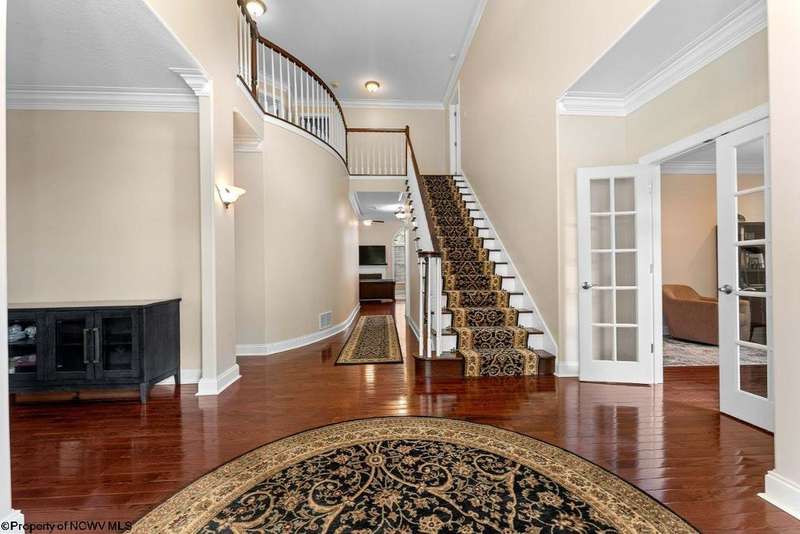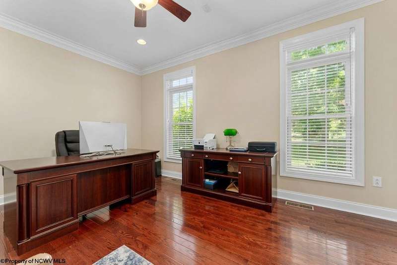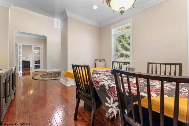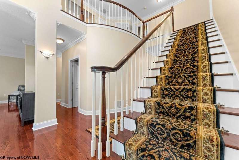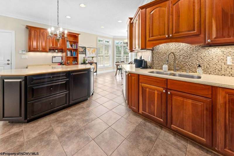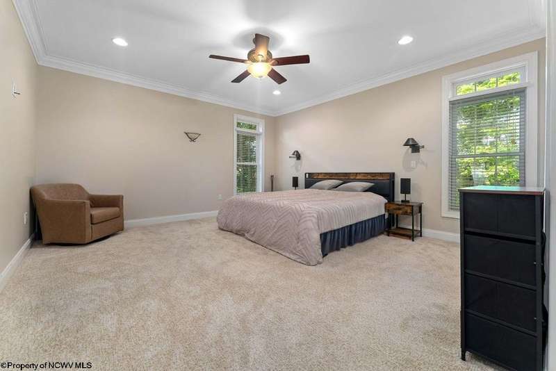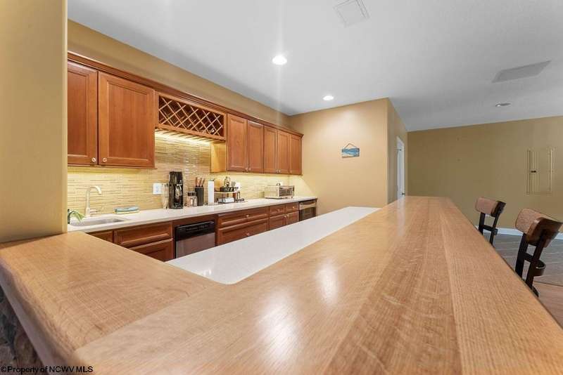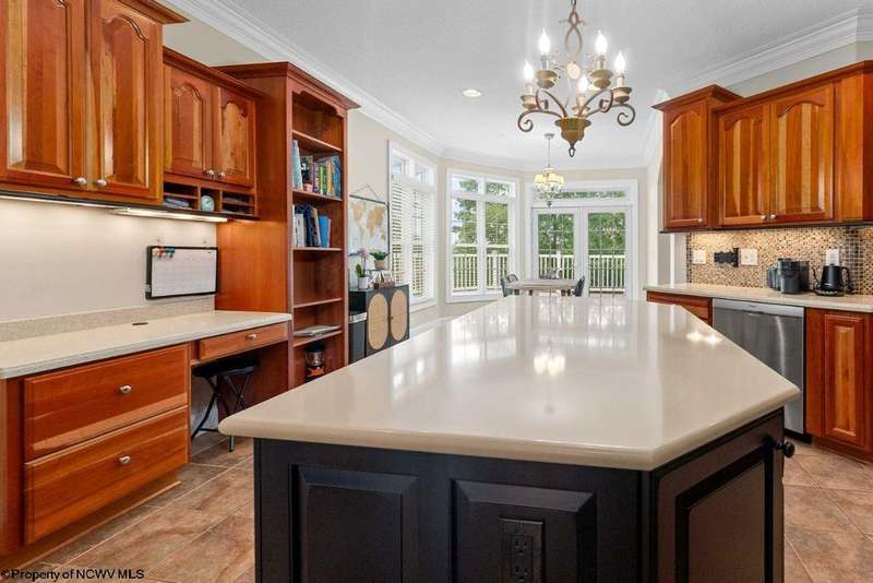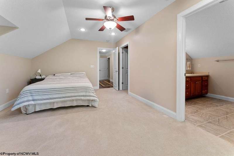 Nestled on a serene, wooded lot within the gated community of Ices Ferry, this custom retreat offers breathtaking seasonal views of Cheat Lake from two expansive decks. The property features spacious rooms adorned with exquisite finishes, four fireplaces, and the potential for a fifth bedroom, making it a remarkable opportunity for discerning buyers. The main floor provides a luxurious primary suite, which includes a beautifully renovated bathroom and a convenient coffee bar, as well as a generously sized tiled shower and closet. The second floor presents three to four additional bedrooms and a versatile bonus room, perfect for various uses. The lower level is designed for entertainment and relaxation, featuring a two-sided fireplace, a game room, an expansive bar, and a dedicated exercise room. This exceptional property provides a rare opportunity to lease a piece of the picturesque Ices Ferry community. Don't miss your chance to experience the perfect blend of luxury and nature.