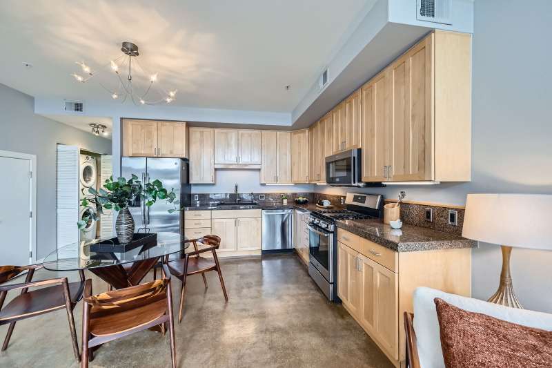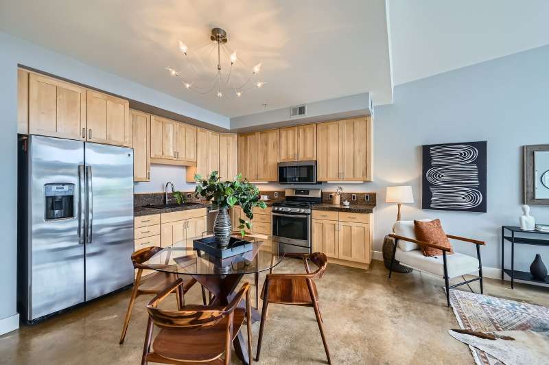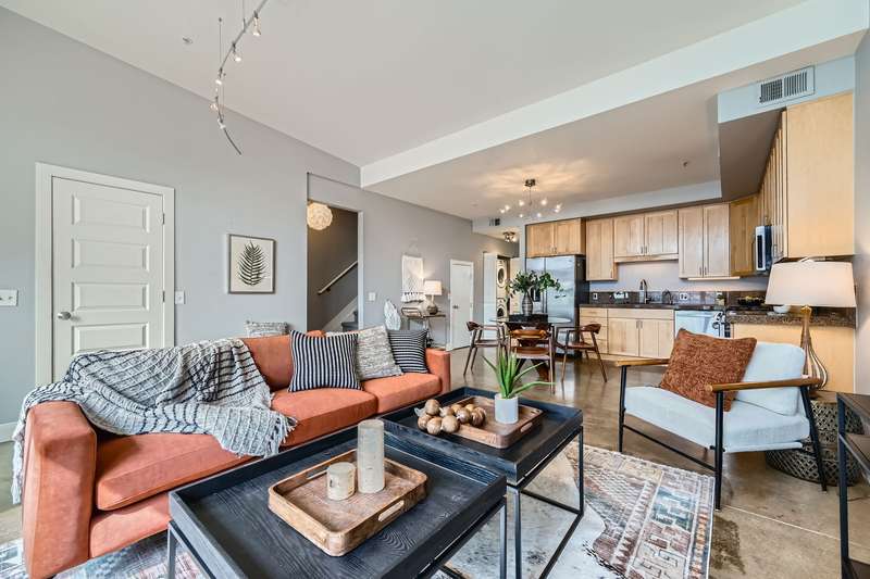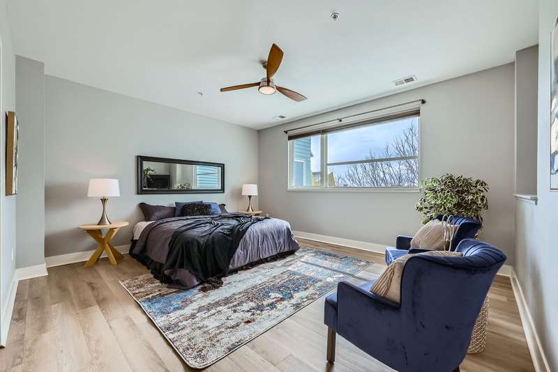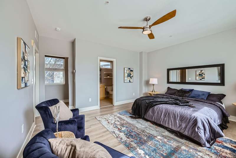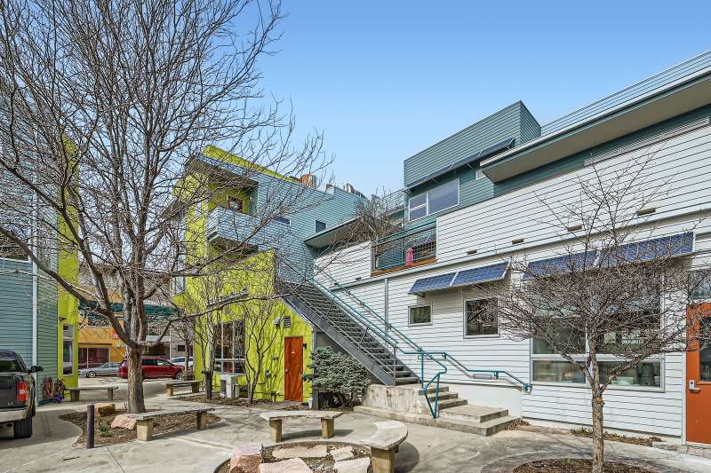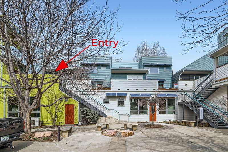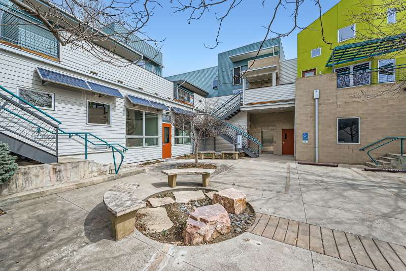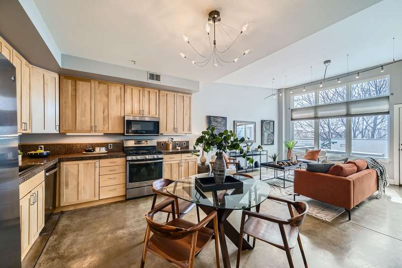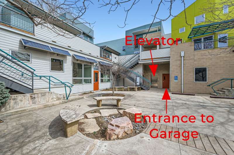 Upscale urban living in Longmont's Prospect neighborhood!! Such a unique live/work building including two fun restaurants, Laguna Mexican and Carciofi Italian. Unit lives like a two story townhome and has a modern feel with concrete flooring, upgraded lighting and maple cabinetry. Rare two bedroom with two FULL baths make this one great for a roommate situation. Primary bedroom has ensuite bath and walk in closet with organizers installed. Radiant heat is warm and comfy! Low utility bills. If you're not feeling the stairs on some days there's an elevator to assist. One reserved space in parking garage that is only 40 feet away. Additional storage in wired compartment in front of parking spot. If you dont know Prospect there's alot to love here.....coffee shops, restaurants, bakery, hair salon, gym, office space...open space, parks and almost best of all---a community garden open to everyone!