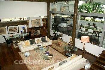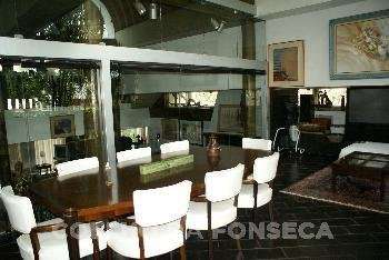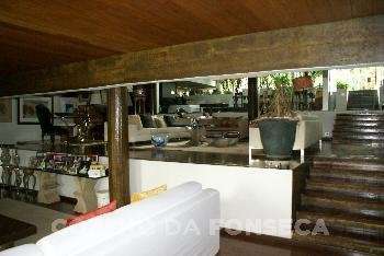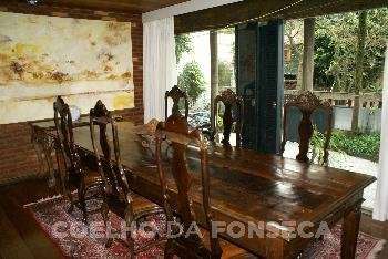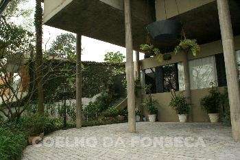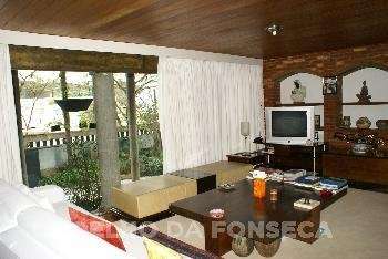 Casa em rua muito tranquila, com ótimo terreno. Projeto em concreto e vidro. Piscina com jardim delicioso. Vagas para seis carros. Sauna. Living em tábuas largas para 4 ambientes, todos integrados. Copa e cozinha. Dois dormitórios de empregada.