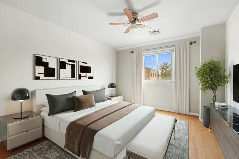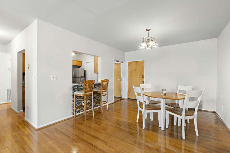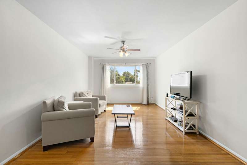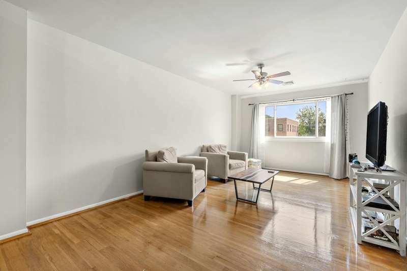 Oversized 2 bedroom in great location with easy access to NYC. Located in an elevator building with parking and additional storage. As you enter the home you are greeted with a sizable living / dining room flooded with natural light. The kitchen is tucked away however, you can still feel part of the living room with an open pass-through and breakfast bar plus a large pantry for all your kitchen items. Both bedrooms are generous in size with good closet space. The home includes in home washer / dryer hardwood floors and is a great layout. This is a great home, great location for commuters with shopping and great restaurants for all.