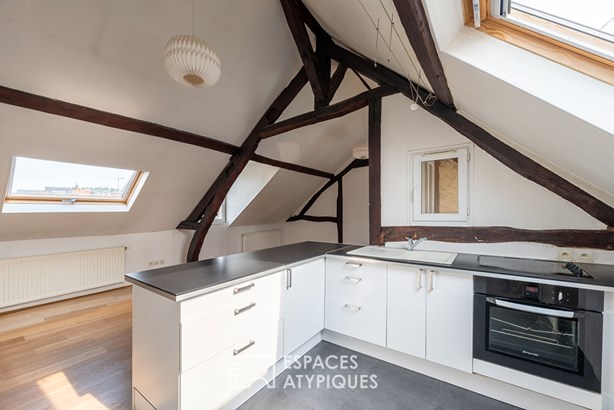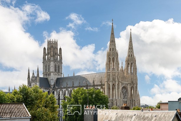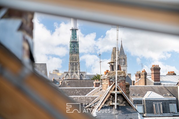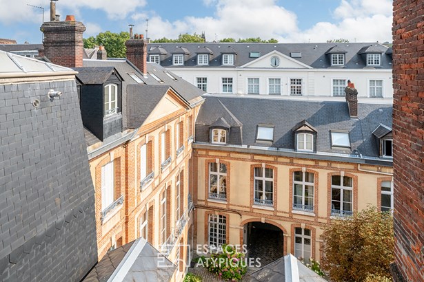 Just a stone's throw from Rouen City Hall and the Rouen Museum of Fine Arts, at the end of a preserved courtyard, this 112m2 (140m2) reverse duplex (Carrez law) is located on the 3rd floor of a small 28-unit condominium.