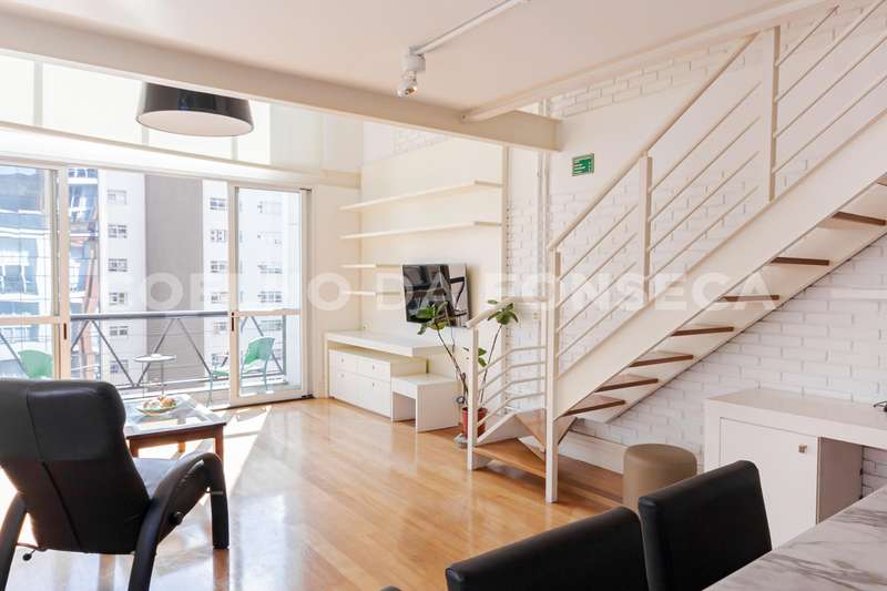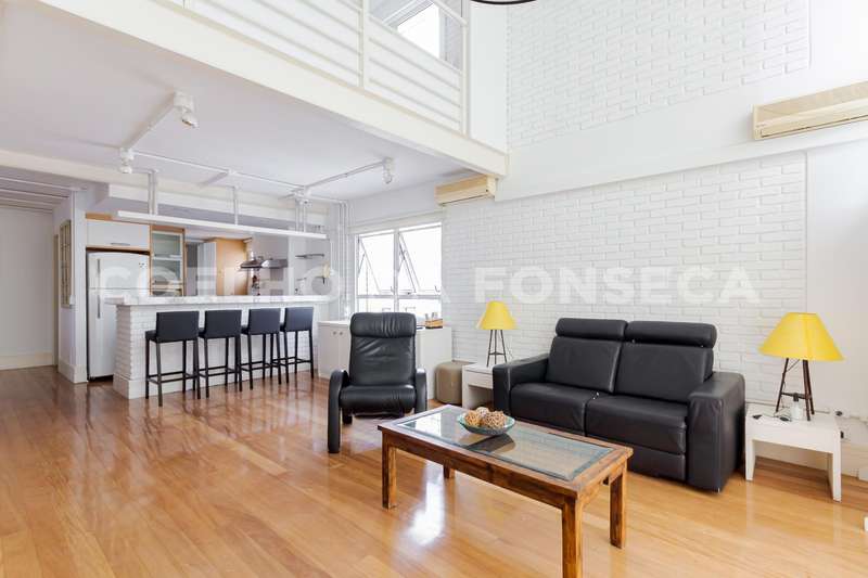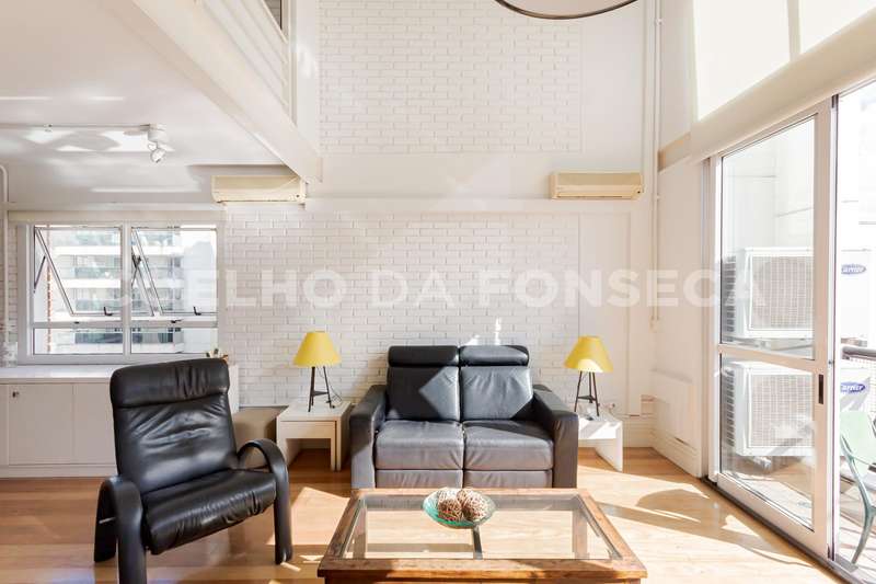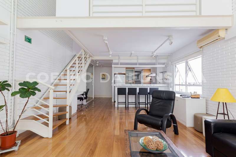 Apartamento no bairro Itaim Bibi com 111m² área privativa/útil, 2 dormitório(s), 2 suíte(s), 2 vaga(s), 3 banheiro(s), terraço, depósito, mobiliado (a), duplex, ar condicionado, dep. de empregados, pé direito duplo.