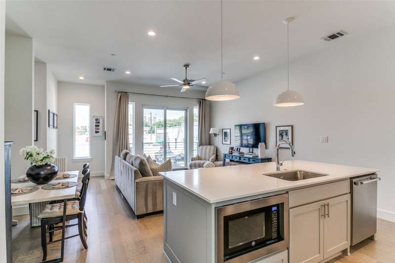 This charming 2-bedroom, 2.5-bathroom residence blends modern elegance with convenience, offering the perfect space for your next chapter. Step inside to discover hardwood floors and designer tile that set a sophisticated tone throughout. The heart of the home features an open floor plan on the second level, ideal for both daily living and entertaining. The kitchen has quartz countertops, a large island, and high-end stainless steel appliances. The small yard out back is perfect for a furry friend or a fun space to grill. You cant beat this location! It is just a short walk to all that Lower Greenville has to offer, as well as an easy drive to Dallas's best spots. Dont miss the chance to make this stunning home yours!