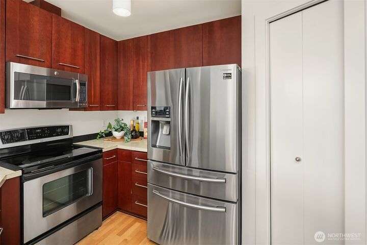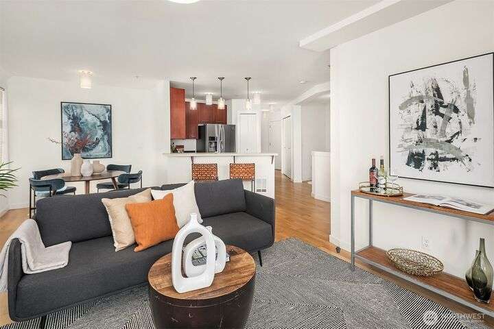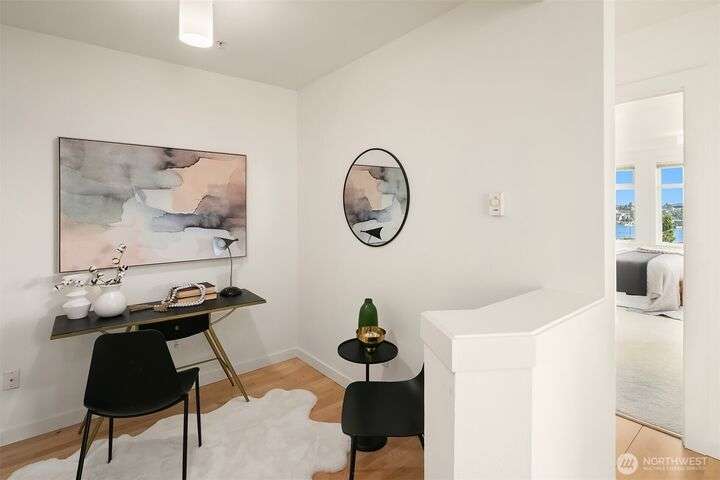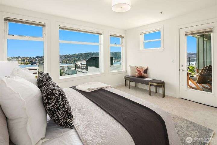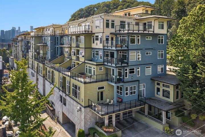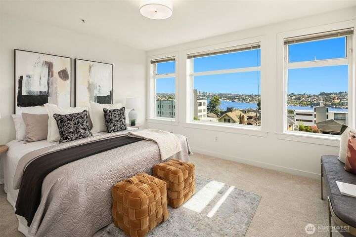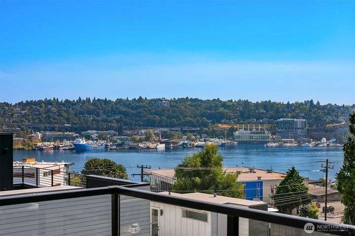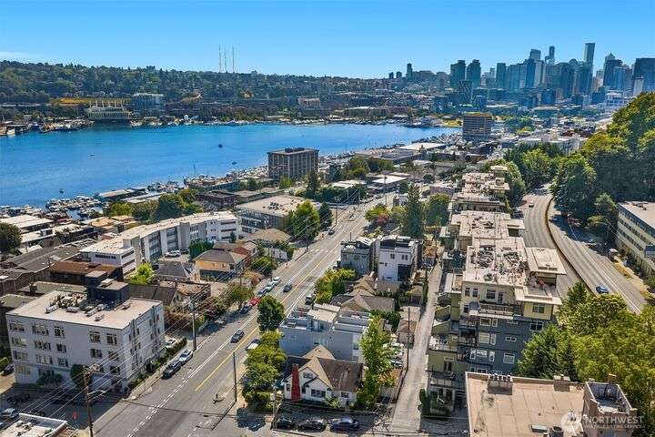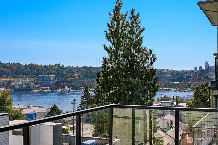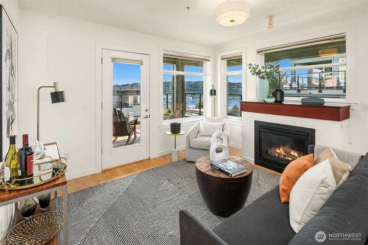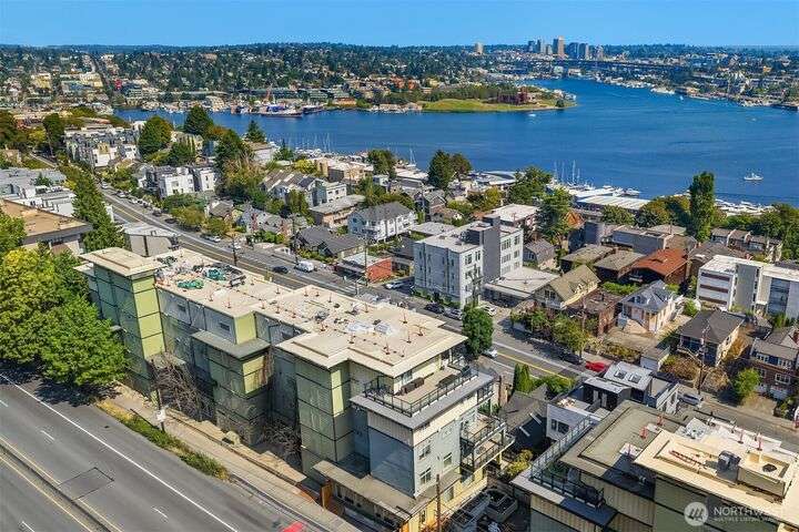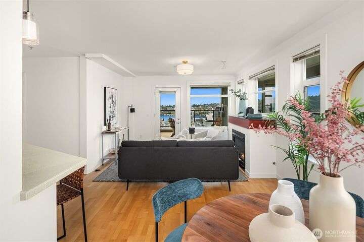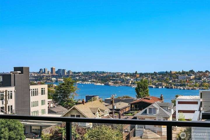 Enjoy incredible lake, mountain & city views from this large 2-bedroom, 2-bath unit at the Portal over Lake Union. Sprawling out over 1100 sqft, the floorplan offers bedrooms on opposite sides for privacy, a proper den for working from home, energy-efficient gas fireplace & a HUGE covered view deck for entertaining. Primary suite w/ big walk-in closet, en-suite bath & lake views that will take your breath away. Recent updates include new carpet in both bedrooms & fresh interior paint. 2 prime parking spots + storage unit. Building amenities include a soon-to-be renovated rooftop VIEW deck, bike storage, secure package room & clubhouse. Located on the east slope of Queen Anne, with EZ access to Westlake, SLU & public transit. No rental cap!