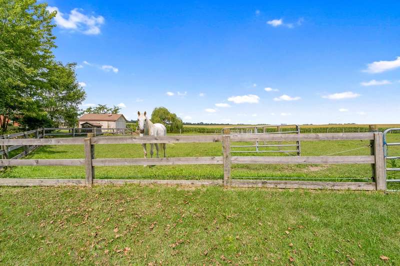 Welcome to this charming 3-story, 4-bedroom, 2.5-bath estate, tucked away on a long private drive, surrounded by mature trees, colorful flowers, peaceful countryside views, and open skies. The property feels like your own private retreat while still being just a short drive to town.Step inside to find a spacious living room with hardwood floors, a beautiful wood burning fireplace, and oversized windows that bring in natural light and views of the grounds. The updated kitchen features classic subway tile, modern finishes, and a dining area that opens through sliding glass doors to the back patio--a perfect spot for summer cookouts or quiet evenings outdoors.Upstairs, the 2nd floor features 3 additional bedrooms, a bonus flex space that could be a 5th bedroom, an updated bathroom with double vanity plus a balcony to take in the views. The entire 3rd floor is dedicated to the primary suite--complete with a jacuzzi tub overlooking the sunset skies. The partially finished basement adds a second wood-burning fireplace, extra storage, and bonus space for hobbies or gatherings.Outside, this property truly shines. Enjoy mornings on the covered front porch with a swing, afternoons by the pond, and evenings under the stars. For hobbyists or horse enthusiasts, the grounds feature an electric-fenced pasture, a horse lean-to, a large heated pole barn, a second lean-to, and a heated attached garage--providing endless options for storage, equipment, or livestock. Conveniently located near major highways--including US-41, US-231, and with quick access to the Illinois border-this property offers both privacy and connectivity. Don't miss your chance-schedule your showing today!