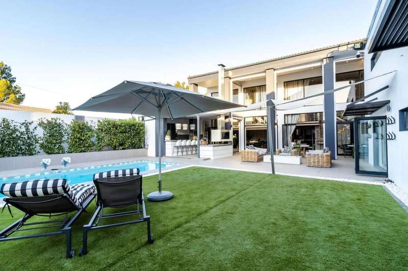 Live the life of luxury in this magnificent 7-bedroom, 8-bathroom estate nestled in the heart of Sonstraal, Durbanville. This versatile 410sqm property, currently operating as a high-end guesthouse, offers a seamless transition to a beautiful family residence. Upon entering, you are greeted by a breathtaking open-plan living area, feauturing double-volume ceilings and oversized windows creating a sense of light and space. The gourmet kitchen is a chef's delight, boasting top-of-the-line appliances, sleek cabinetry, and a generous island perfect for casual meals or entertaining. The outdoor area is an entertainer?ÇÖs dream, featuring a sophisticated built-in braai, inviting lounge spaces, and a sparkling pool overlooking the meticulously landscaped garden?Çöa perfect backdrop for unforgettable gatherings. Each of the seven bedrooms is a sanctuary of comfort and privacy, complete with its own lavish en-suite bathroom, individual air conditioning, and a television, providing a true retreat for every resident or guest. The property is further enhanced by two double garages and a large parking ramp, ensuring ample secure parking. Situated in a prime location, this home offers the perfect balance of serene suburban living and convenient access to Durbanville's amenities and the wider Cape Town area. Priced at R9,950,000 (excluding VAT), this exceptional property represents a unique opportunity to own a piece of paradise. Contact us today to arrange your exclusive viewing and experience the elegant living this unique property offers.