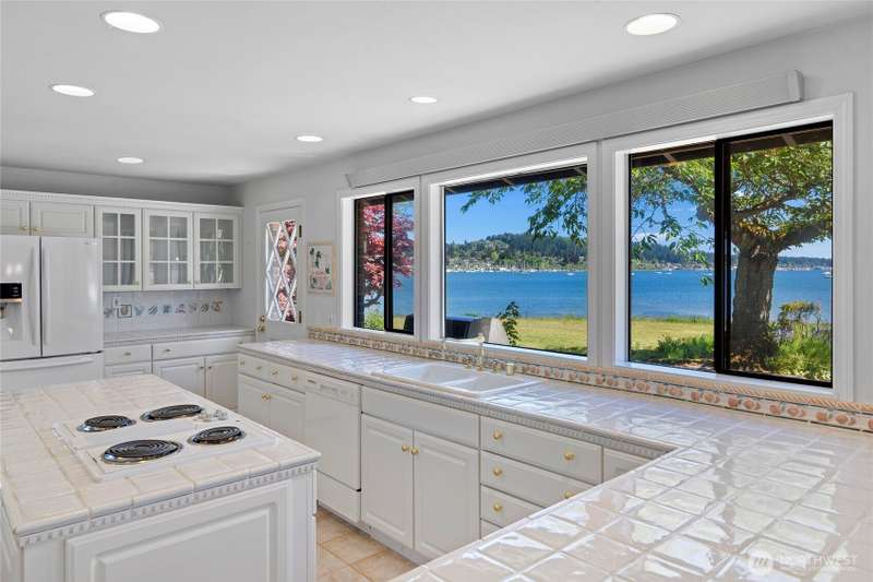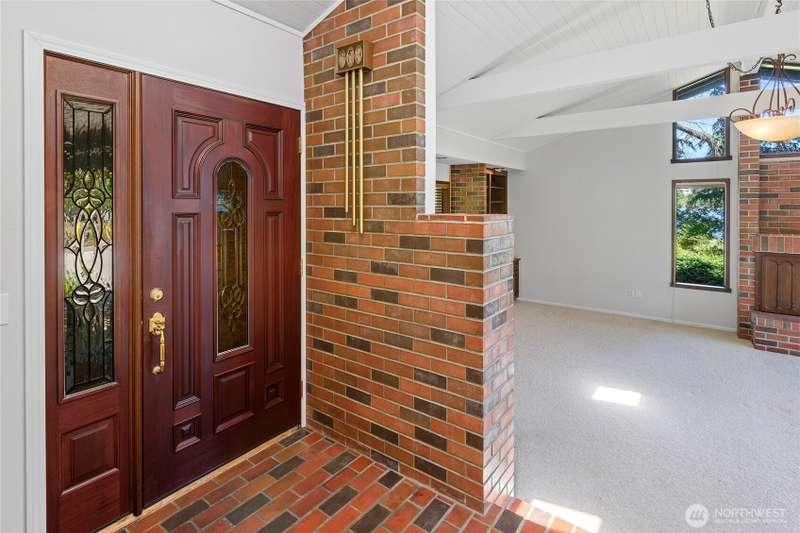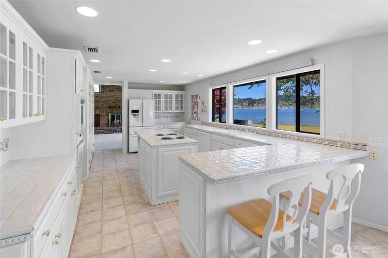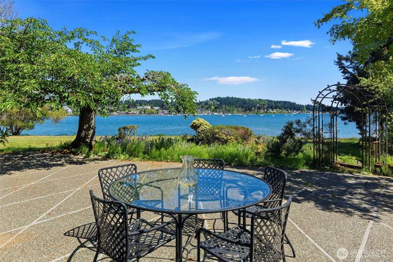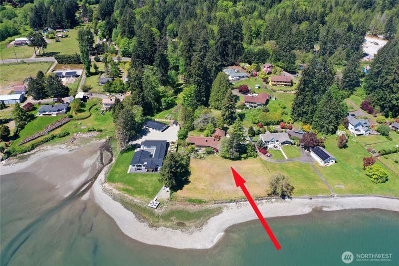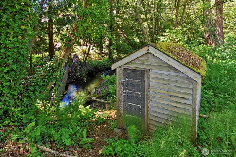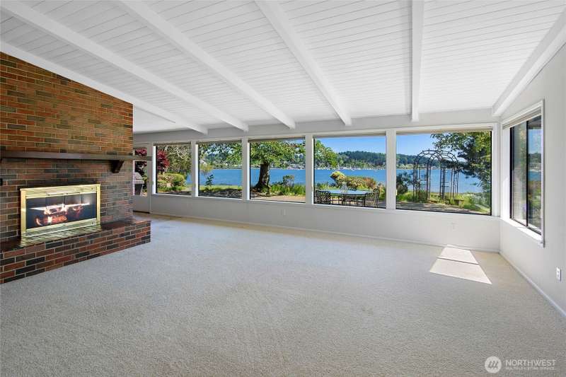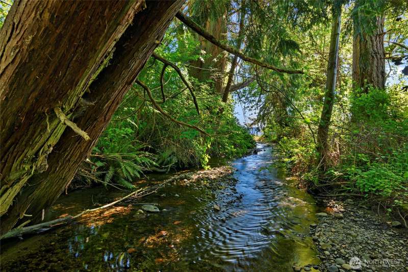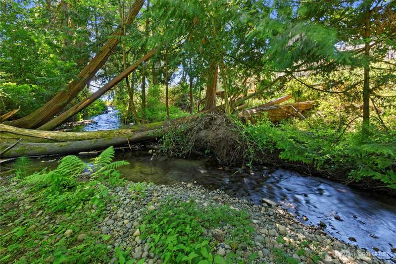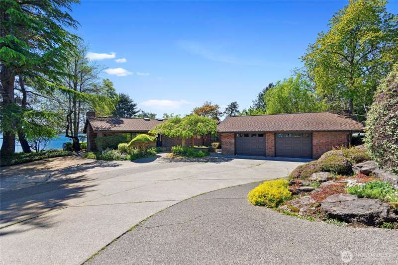 A property such as this is a rare find. Located at the SW edge of Poulsbo city Limits, this 2+ acre property with 224’ of low/no bank Liberty Bay waterfront, views of downtown, Liberty Bay & Mt Rainier, also includes 172’of no bank Johnson Creek (salmon bearing). All this plus a 2625 Sq Ft brick 1 story, 3 bedroom, 3 bathrooms (1 full, 1 ¾ & 1 ½) home w/75’ covered walkway to the oversized 2 car garage. The large primary suite features its own private covered patio from which the expansive vistas may also be enjoyed. In addition to the two bays for cars there is the equivalent of another bay which the Seller used as a shop.