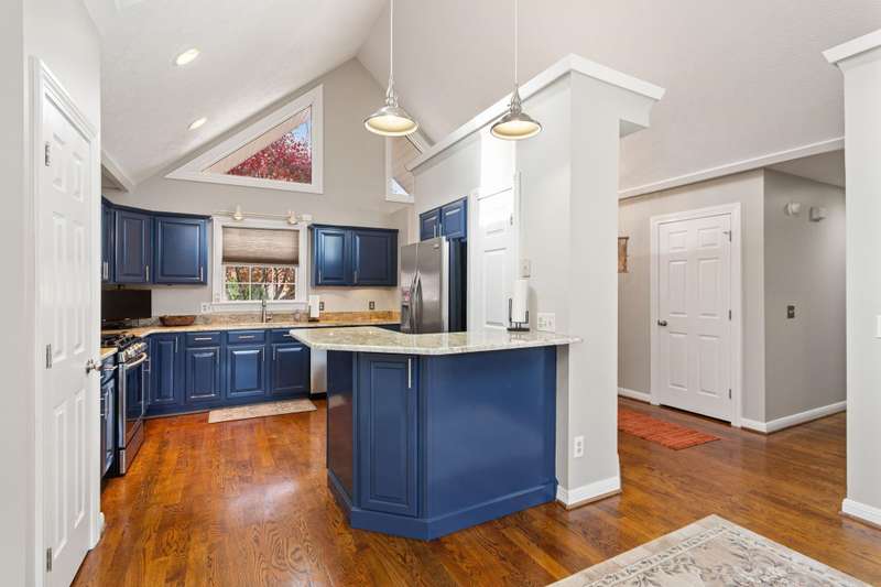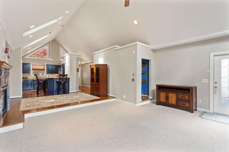 This beautiful home is full of light and space, yet still feels warm and cozy. The kitchen has plenty of cabinets and a pantry for storage. All SS appliances, new granite countertop and freshly painted cabinets. It opens to the dining area which flows into the living area. Vaulted ceilings with skylights, huge windows and a gas fireplace make it a great place for gatherings or a quiet place to sit and enjoy the peacefulness of the setting. The primary suite, 2 bedrooms, hall bath and a half bath complete the main floor. Access to deck from the living area and the primary suite. Inside, the extra wide stairs take you to the walk-out basement and oversized 2 car garage. The basement has a family room, 4th bedroom, multi-purpose room, full bath and laundry room with storage closet and access to large grass backyard. Located in Piney Mountain Acres, it is between the Water Park and Rt 33, so it has quick, easy access to everything and the benenfits of Massanutten membership, but in a more peaceful setting. This home has always been a primary home but would make a great STR. 2025 - kitchen, dining, living area, stairwell and cabinets painted, granite countertop. 2024 new dishwaher. 2023 painted garage floor. 2022 new deck, HW heater.