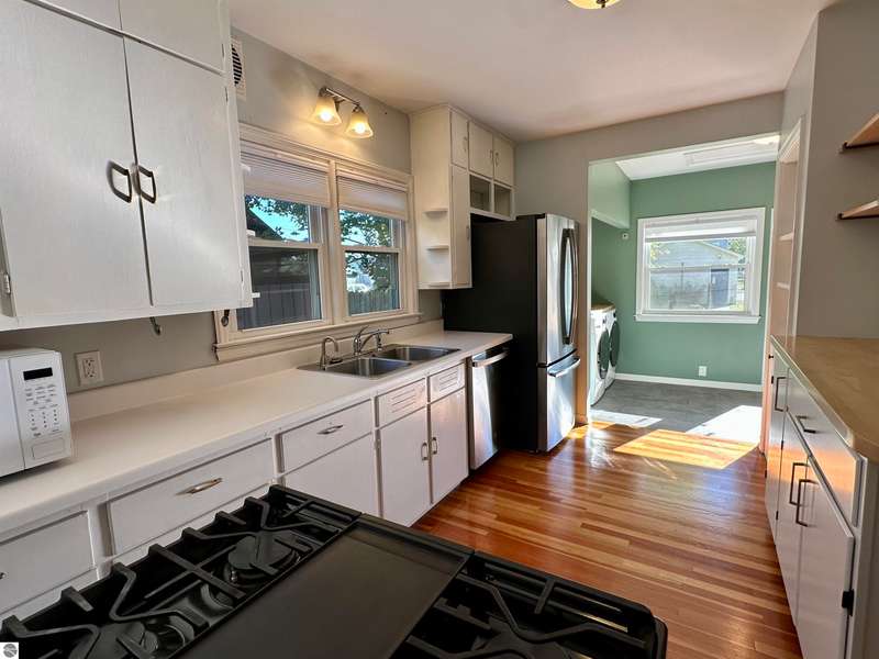 Just steps from everything Traverse City has to offer, this beautifully remodeled home on 12th Street blends timeless character with thoughtful updates at every turn. The 2022 addition introduced a spacious mudroom, main floor laundry, and a stunning custom-tiled bath with heated floors, an oversized rainfall shower, and floor-to-ceiling glass. Enjoy a bright, open layout and peace of mind with a new roof, windows, siding, spray insulation, A/C, appliances, and gas stove. Step outside to a large new deck overlooking a surprisingly private, fully fenced yard shaded by mature maple trees--yes, they even produce syrup. With three bedrooms, 1.5 baths, and a 1.5-car garage, this is downtown living done right: beautifully updated, move-in ready, and full of Traverse City charm.