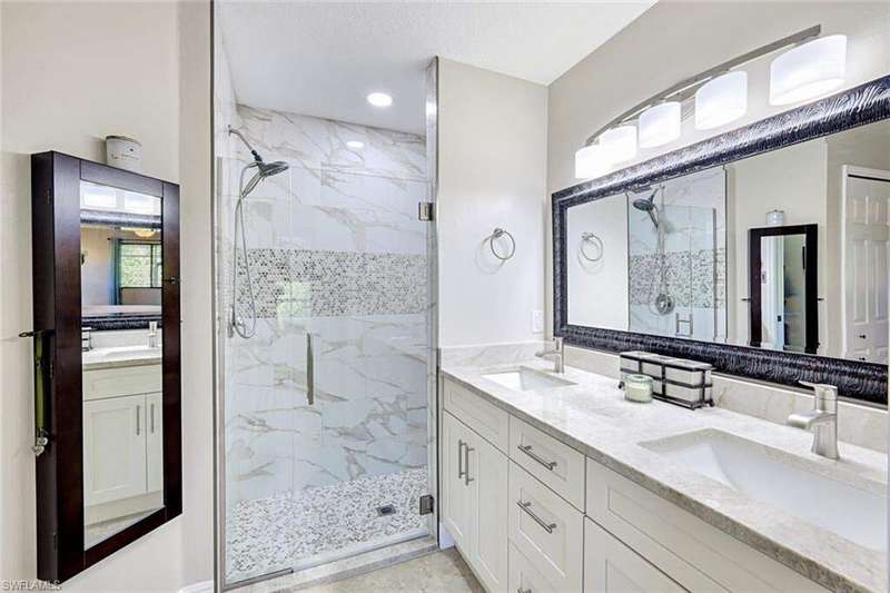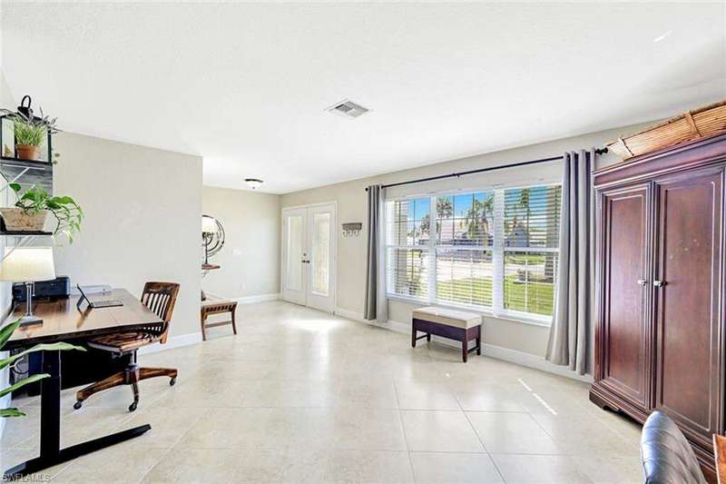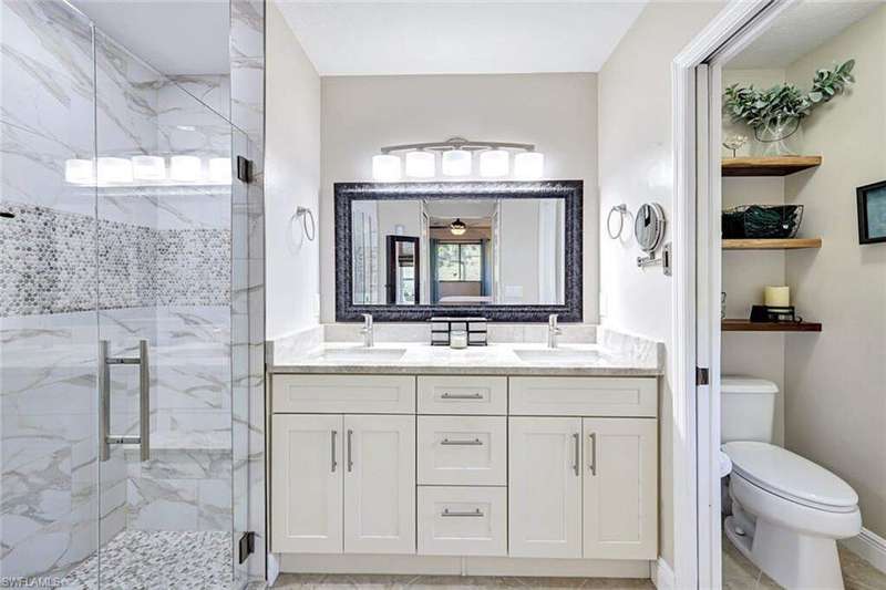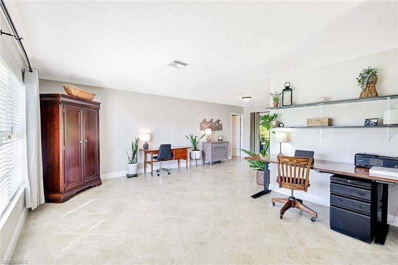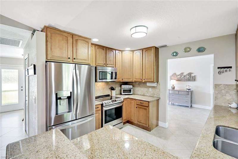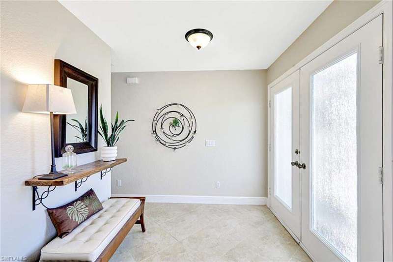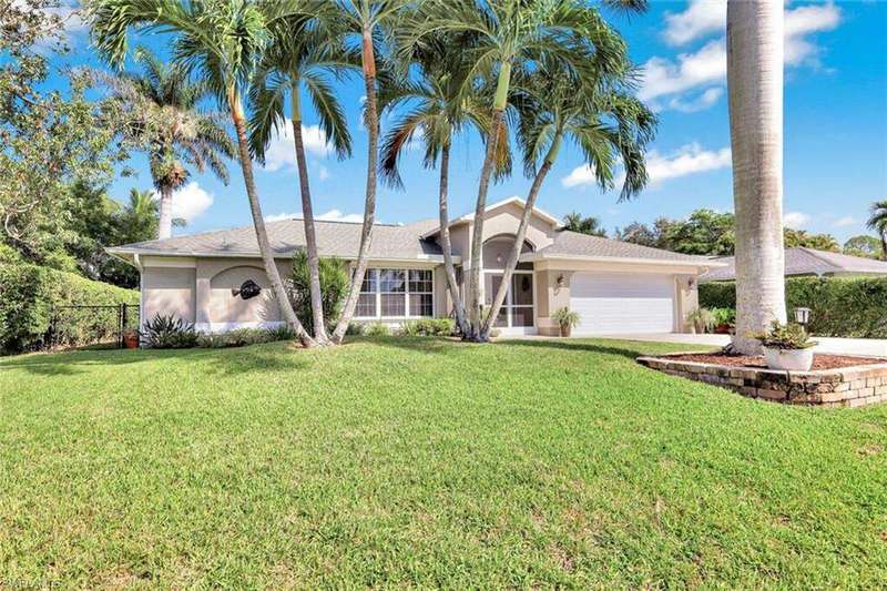 Discover this awesome Willoughby Acres home offering exceptional space, privacy, and timeless Florida charm! Situated in the heart of North Naples, this residence features a huge fenced-in backyard, perfect for outdoor living, entertaining, or even a future pool. Enjoy the freedom of living in a highly desirable community with no HOA fees. Step through the double door entry into a bright, open living area with 20-inch tile flooring, vaulted ceilings, and abundant natural light. The kitchen includes upgraded wood cabinetry, granite countertops, stainless steel appliances, and a custom tumbled marble backsplash, ideal for cooking and entertaining. The spacious owner's suite offers dual walk-in closets and a beautifully remodeled bathroom featuring dual sinks and custom tiled shower. Each guest bedroom includes a walk-in closet, and the oversized laundry room provides additional flex space and storage. Step outside to the expansive screened lanai, complete with an above ground spa and terrace overlooking the private backyard; it's inviting space to unwind or entertain. Electric and manual storm shutters offer peace of mind, along with a new roof in 2018 and a brand-new water heater. Collier County Public Schools shows this home is zoned for top rated schools. Located just minutes from Naples' finest beaches, dining, shopping, and entertainment. This home perfectly blends comfort, style, and convenience.