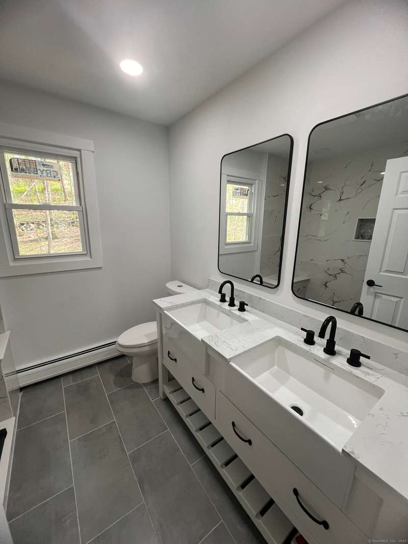 Gorgeous Dutch Colonial fully remodeled in the heart of Fairfield County! Monroe has been named one of the seven best places to live in CT by world atlas. This home offers hardwood flooring with an outstanding open floor plan. Main level offers a huge family room cathedral ceiling and woodburning fireplace with a French Door leading to a light and bright sunroom. Brand new kitchen with white shaker cabinets quartz counter tops with a farmhouse sink and white glass appliances. There is a breakfast area that has a new Anderson sliding door that leads to a huge deck for entertaining. Off the kitchen there is a formal dining room with beautiful views from the newly installed panoramic windows in both living and dining room. Living room is double sized for those family gatherings! House has recessed lighting throughout all three stories. Laundry room on main level and half fully renovated bath complete first floor. Second floor has four bedrooms with seating window areas and two full bathro