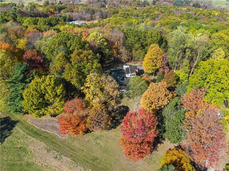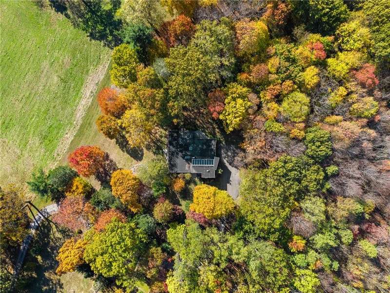Secluded 17-acre retreat bordering Hartwood Acres Park with direct trail access and spectacular views! This unique property blends timeless charm with modern upgrades, including natural gas, city water, whole-house filtration, new septic and water lines, back-up generator, and dual HVAC systems. Custom cherry floors, built-in cabinetry, automatic blinds, and a whole-house audio system add warmth and functionality. Enjoy a professionally installed sauna, outdoor shower, fenced dog pen, and tranquil water features. The second-floor studio with full plumbing offers flexible living space?ideal for a guest suite or home office. With room to build a barn, this property is perfect for equestrians who dream of riding directly into Hartwood Acres. Whether you're seeking peace, creativity, or adventure, this move-in-ready home offers a lifestyle of comfort, privacy, and possibility. Access via a quiet private road. Split across 10 and 7 acre parcels.