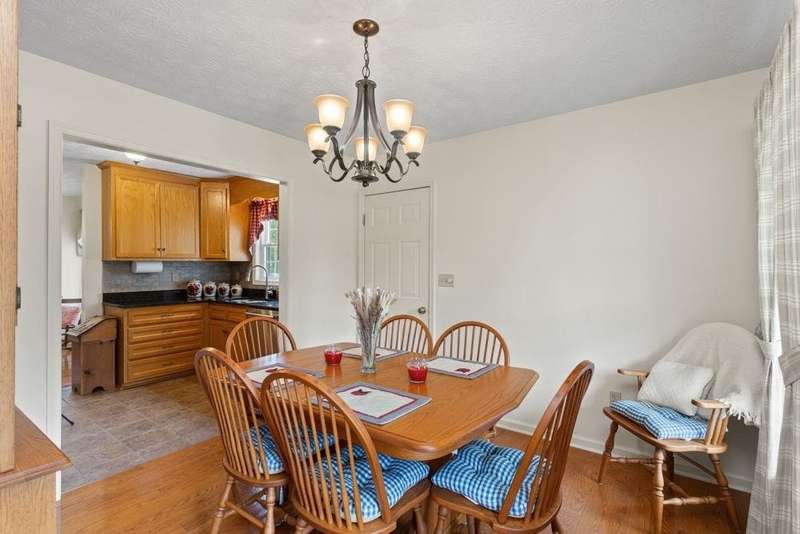 An established neighborhood combined with a practical living space that offers community charm making this property an attractive option for comfort & an inviting place to call HOME. This story and a half style presents compact on the outside but is spacious inside & skillfully combines exterior design with a thoughtful interior layout, many features and ample livable square footage. 2025 Roof, Trane Heat Pump 7 years old, Hot Water heater 7-8 years old. Owner installed an irrigation system that covers the front & rear yard. Fenced in rear yard overlooked by a screened porch with Sunsetter retractable awnings. Side drive to rear of home works well for camper/RV. Lots of closet space, floored attic & unfinished area in lower level for all your storage needs. Shed has electric. Large family room in the lower level offering a full bath with walk out to patio.
