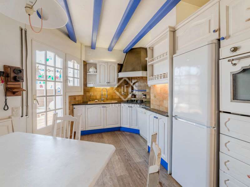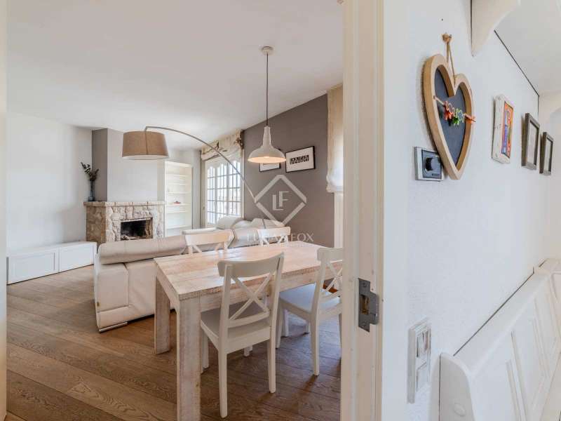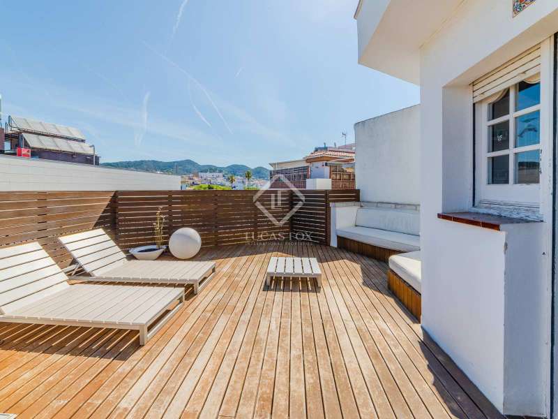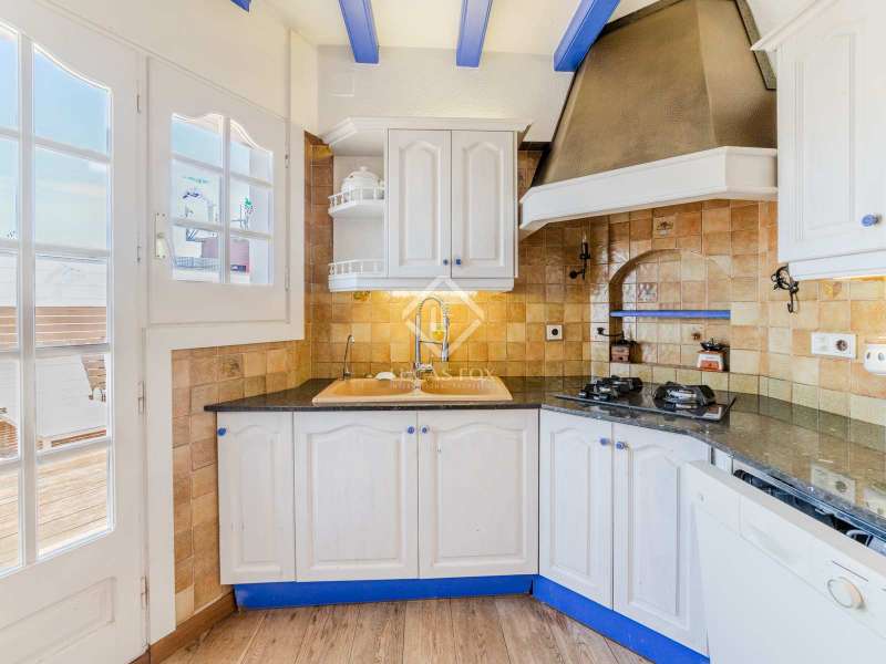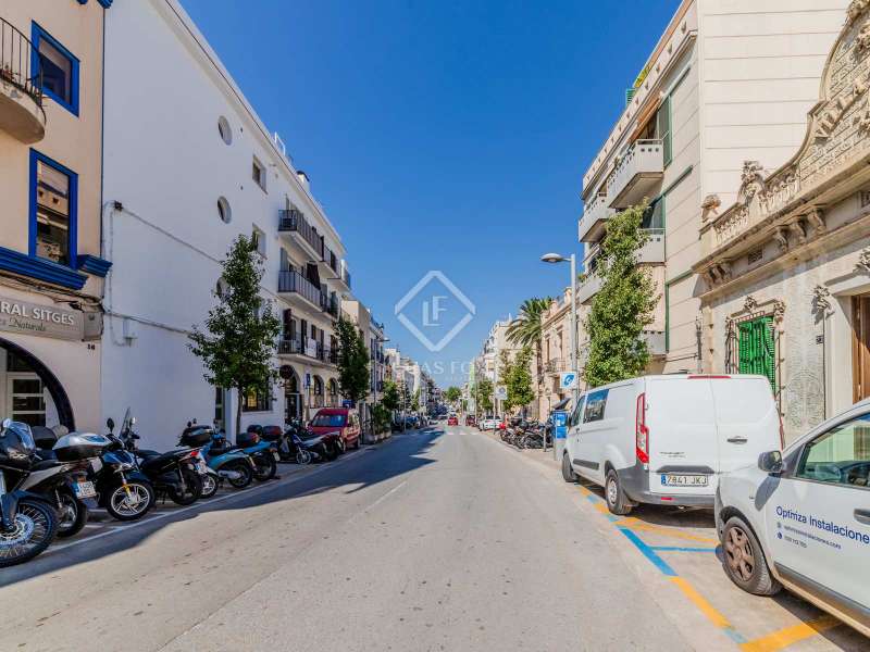 A comfortable lift takes you to the door of this property. It is a corner penthouse with 2 floors, enjoying views stretching out as far as the Garraf hills and the central streets of Sitges. On the lower floor (third floor) we have two double bedrooms, one of which has an en-suite bathroom with a shower and whirlpool tub. On this same floor we also find an office with access to one of the terraces and a bathroom. On the upper floor we find a large living room with a fireplace and access to the terrace of 52 m² (teak floor, dining area and space for sunbathing), a separate kitchen with white lacquered finishes and access to the terrace, and a toilet. This wonderful penthouse is in the centre of Sitges, near the station, stores, restaurants and all the services of the town. One of the best locations in Sitges and in a building with only 3 neighbours. Contact us to arrange a viewing of this duplex penthouse for sale in Sitges.