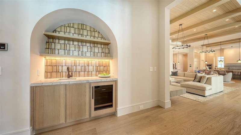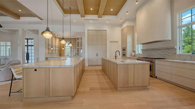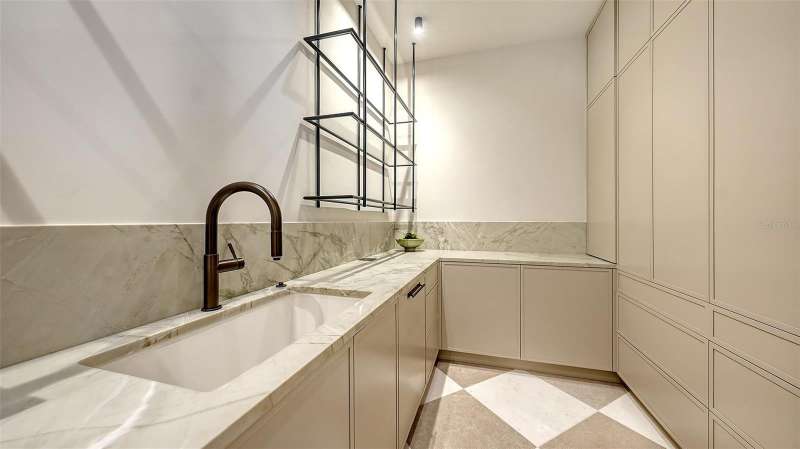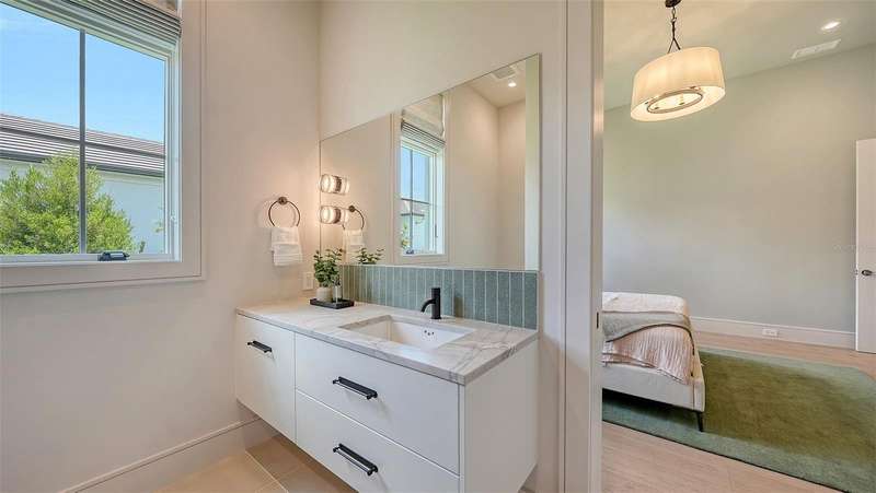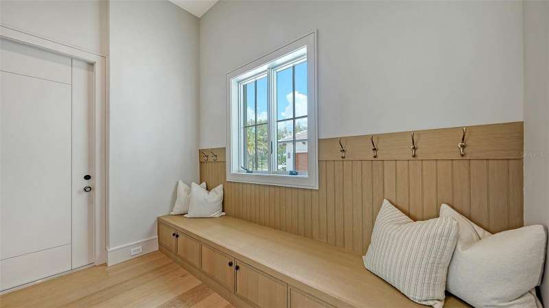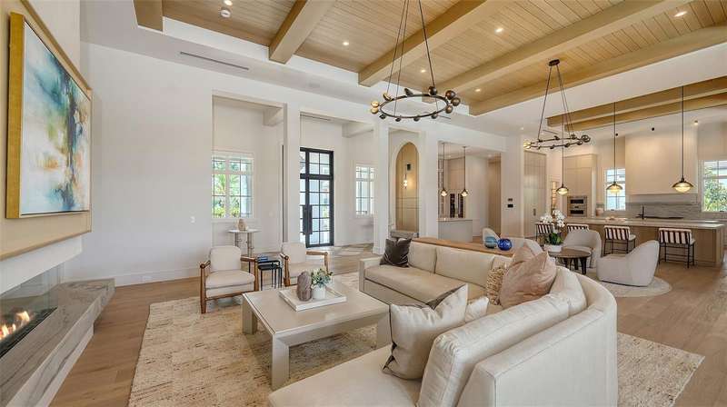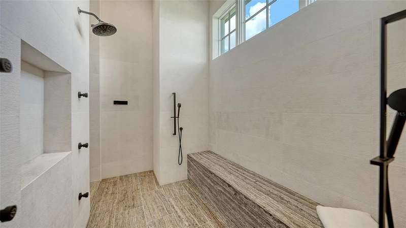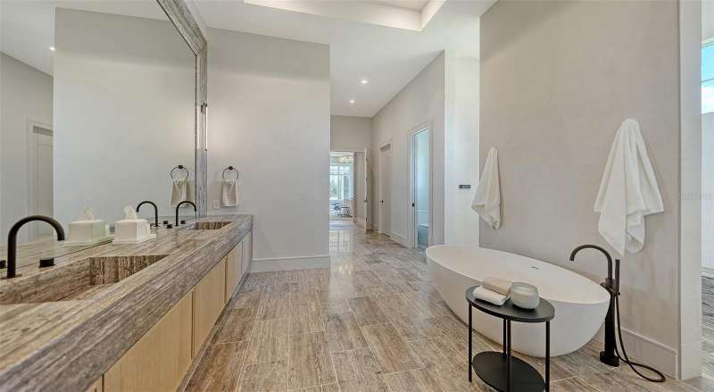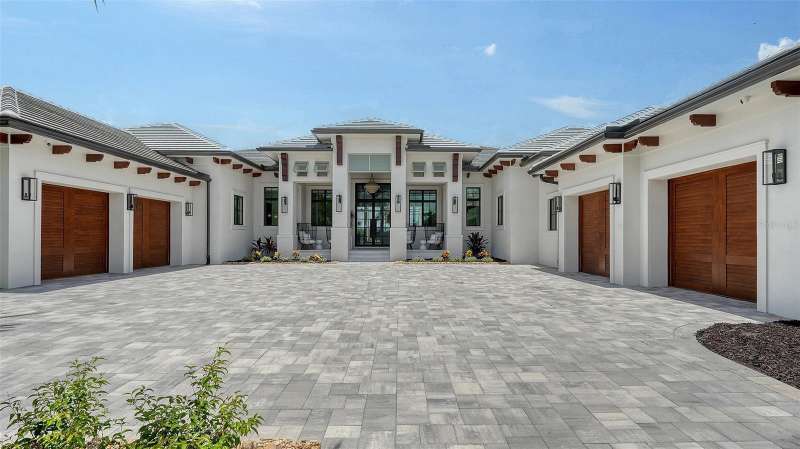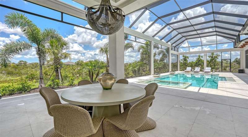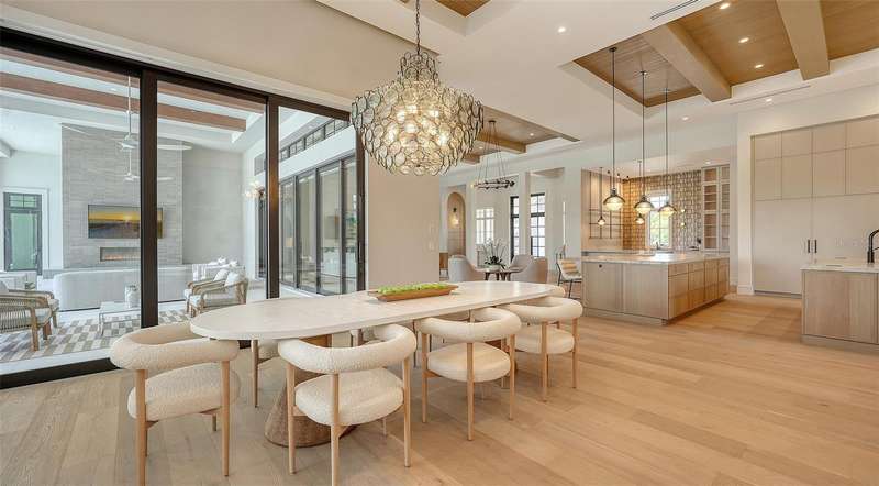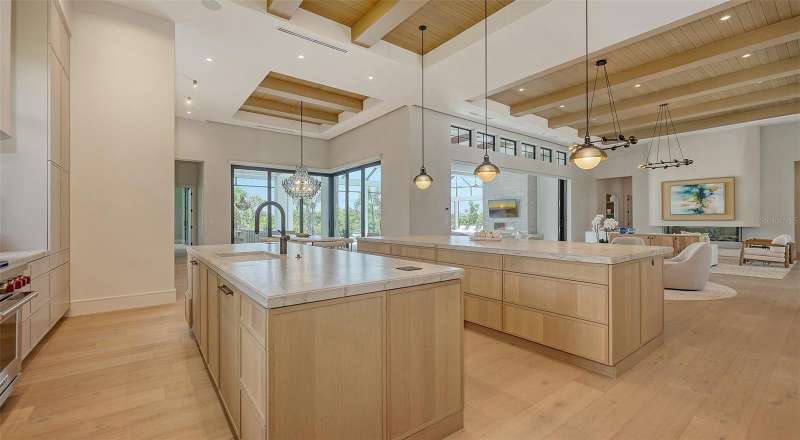 Under contract-accepting backup offers. Tucked within the private, gated cul-de-sac enclave of Anchorage Place in The Lake Club, this six-month-old Stock Custom Home is a true architectural masterpiece. Set on two-thirds of an acre with sweeping views of lush natural surroundings, this 5,997 sq. ft., four- bedroom, five-and-a-half bath estate blends modern sophistication with serene, Florida resort-style living. Professionally decorated and fully furnished with new furnishings ($350K furniture package and $100K in recent upgrades), this stunning home embodies “organic modern” elegance—defined by earthy hues, layered textures, and refined finishes. The thoughtful design is evident from the moment you arrive, beginning with a smart glass iron front door with switchable privacy feature, intricate inlay flooring, and 15-foot tongue-and-groove rift-cut white oak ceilings that match the wood flooring throughout. The light-filled great room is anchored by a curved stucco wall with a 72” three-sided gas fireplace and features 10-foot pocketing sliding glass doors topped with transom windows, seamlessly connecting the indoors to the outdoors. A concealed TV, tucked behind remote-controlled artwork, adds to the room’s sleek, sophisticated design. Across the room, a custom curved kitchen hood echoes the architectural elegance of the fireplace wall. The chef’s kitchen is a showstopper with leathered quartzite countertops and backsplashes, dual islands with hidden storage, a large butler pantry, and luxury-grade appliances—including paneled Sub-Zero refrigeration and two Cove dishwashers, and a Wolf dual gas range with six burners, griddle, and double ovens, and a Wolf steamer oven and speed oven. Just off the kitchen is a stylish wet bar with ceiling-mounted shelving, decorative wall tiling, Sub-Zero wine refrigeration, and built-in ice machine—perfect for effortless entertaining. The open-concept dining area features corner pocket sliding doors for full integration with the lanai and pool area, while a generous and versatile bonus room offers flexible living space. The primary suite is a luxurious private retreat, complete with a cozy sitting area, a separate office with floor-to-ceiling built-ins, a morning bar, two custom walk-in closets, and a spa-inspired bath with integrated travertine wall, countertops and flooring, dual water closets, a walk-through shower, and an oval soaking tub. Each of the three guest suites includes its own full en-suite bath and walk-in closet, offering privacy and comfort for family or guests. Step outside to your own private resort—an expansive screened lanai (3,270 sq ft) featuring covered and open-air seating and dining areas, a full outdoor kitchen with island and bar seating, a 72” TV over a 48” linear vent-free fireplace, a saltwater pool and spa with a swim-up bar, and dramatic fire bowls—all set against the tranquil backdrop of preserved natural beauty. Additional highlights include a spacious laundry room with custom cabinetry, a symmetrical four-car garage, a whole-house gas generator, Lutron and Hunter Douglas shades, and an integrated “Smart Home” which includes house-wide boosted Wi-Fi with system integration for selected lighting and shades, all TVs, music, thermostats, all exterior lighting including the lanai and home security cameras. The home includes Starlink to ensure uninterrupted internet access. Located in Lakewood Ranch, Lake Club amenities include a clubhouse, pools, fitness center, tennis and pickleball courts, scenic trail.
