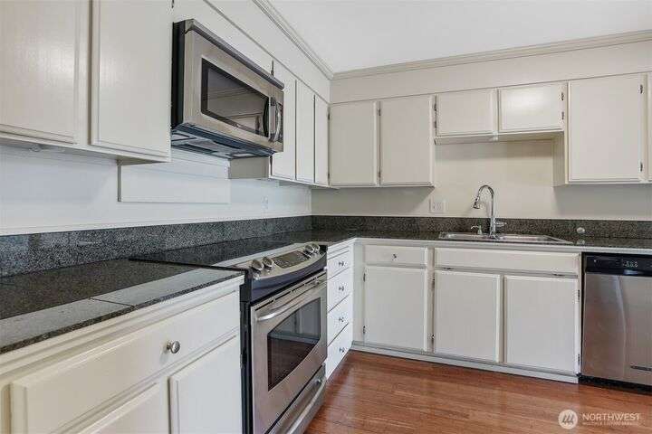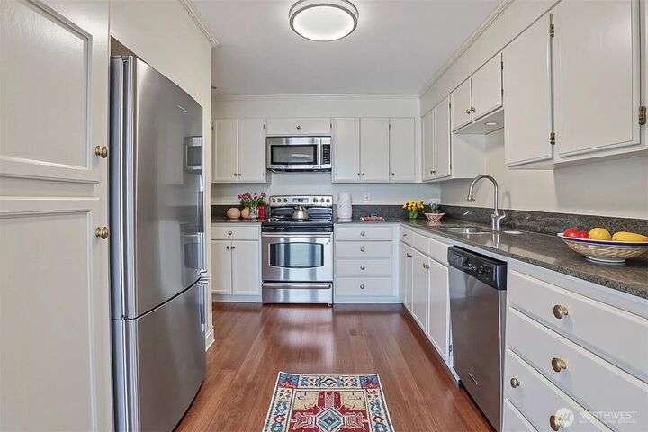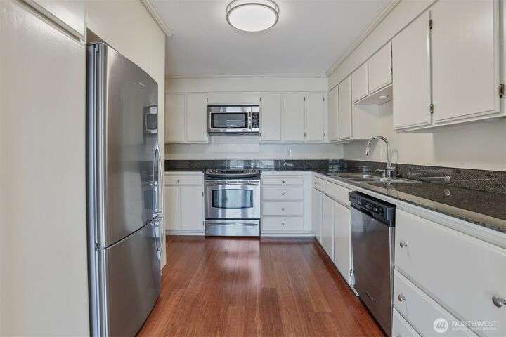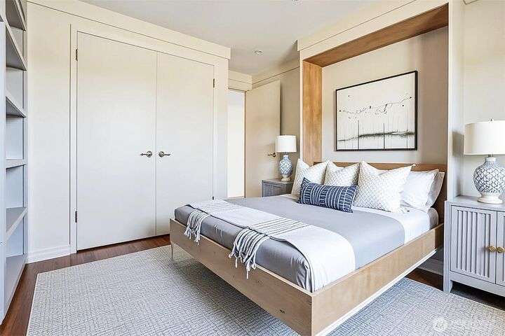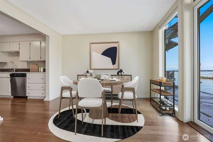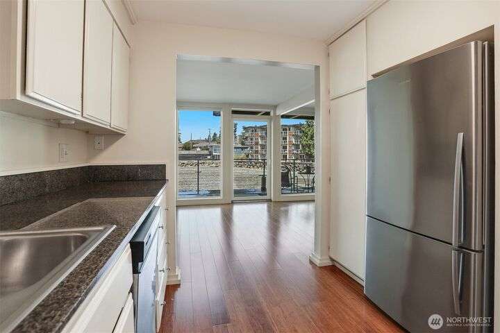 Live like you are on vacation every day at Harbor West! Experience a dreamy waterfront lifestyle with spectacular views & lapping waves! This one floor unit has a very functional floor plan with large rooms for efficient living. Formal living & dining rooms with wall of windows and access to the deck that stretches the length of the unit. The primary suite has a walk-in closet, en-suite bathroom and will fit your King bed! The second bedroom has a murphy bed so you can easily use it for your office while also maintaining space for your guests. Secured garage parking. Building boasts a beach side pool, sauna, storage, and manager. An outdoor enthusiast's paradise with kayak, walking, running, and beach games at your fingertips. Welcome home!