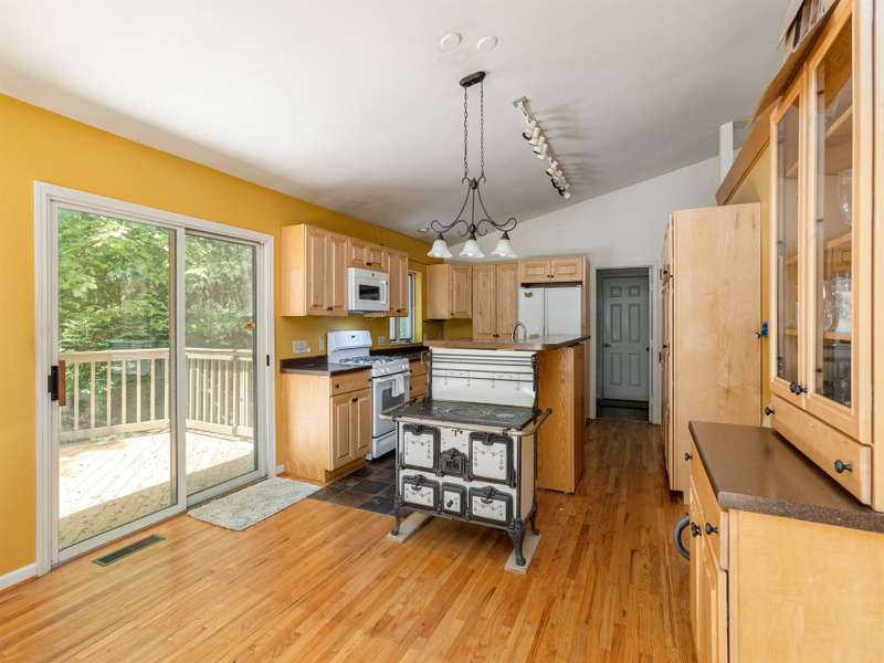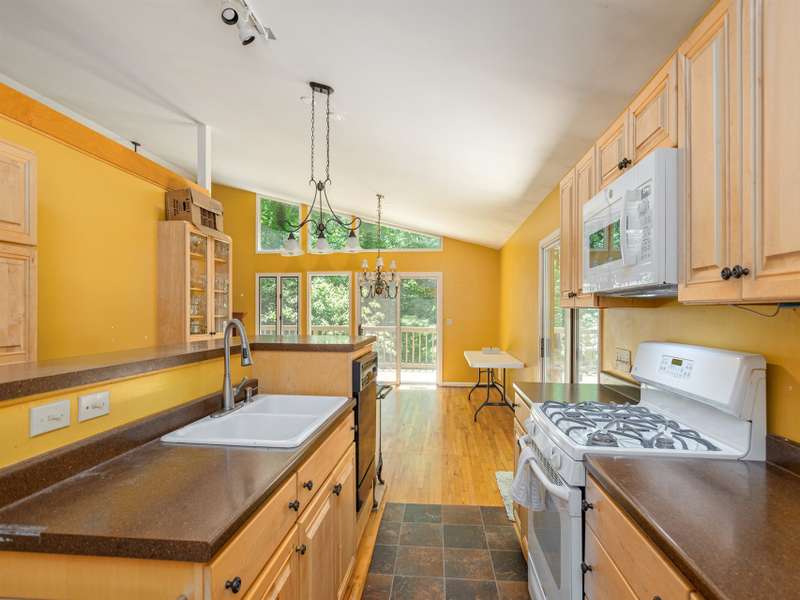 At new listing price transform this house with your very own taste! Update your way!!! Then live in the woods with a babbling brook flowing by. Wonderful house to call home! Spacious rooms, vaulted ceilings on main floor, fireplace to warm those chilly nights, pretty hardwood floors in Great Room and Dining area, lots of windows to let the light fill the main living space! Drive right into 2 car garage to put the groceries away with ease. The basement offers plenty of room to relax by the second fireplace, entertain guests with extra bedrooms and bath. Grand storage for all those extra belongings too! If you enjoy outside living the deck wraps around the back and side of the house... easy access from main level. Come see for yourself and stay a lifetime! Being sold "as is, where is"!