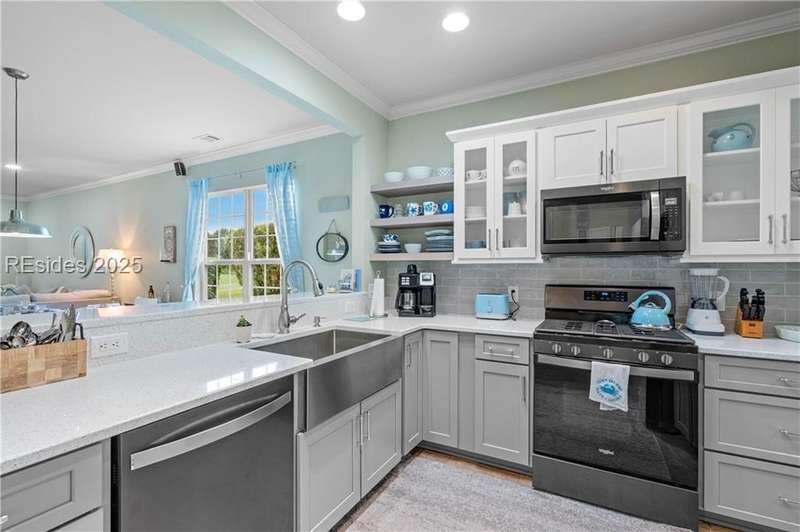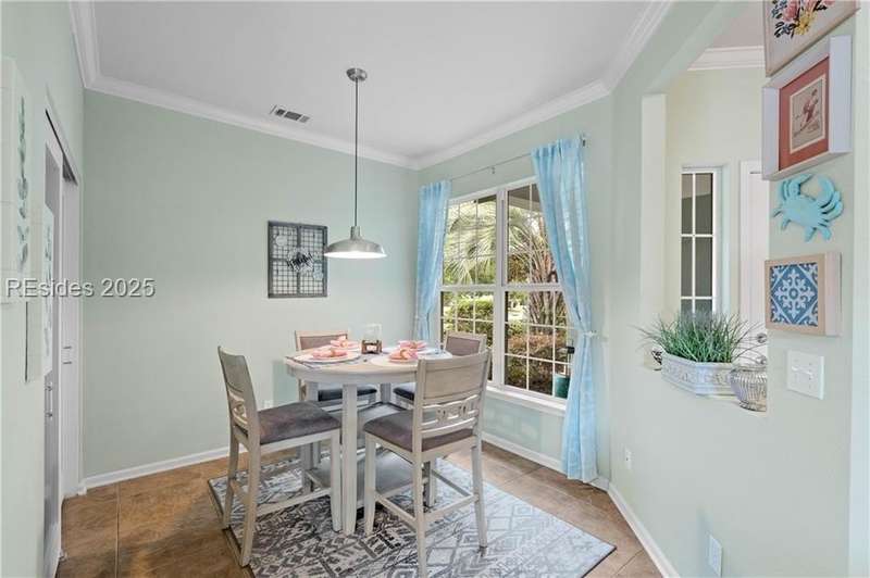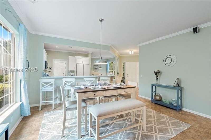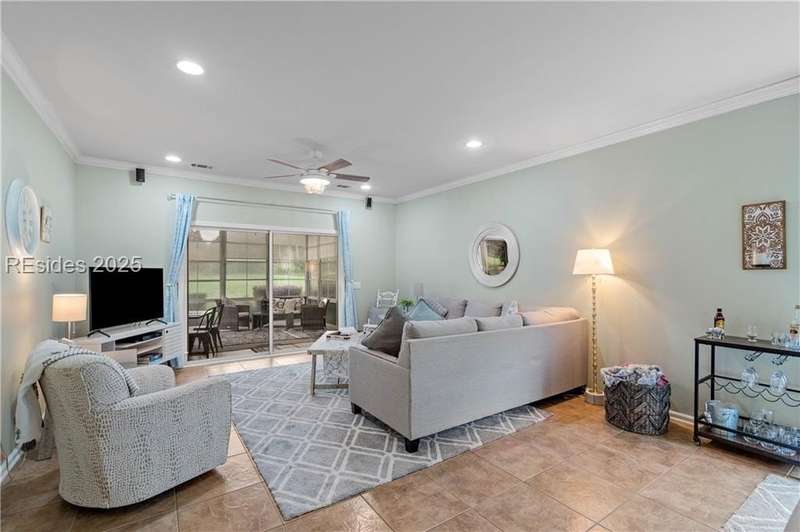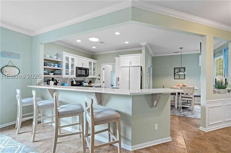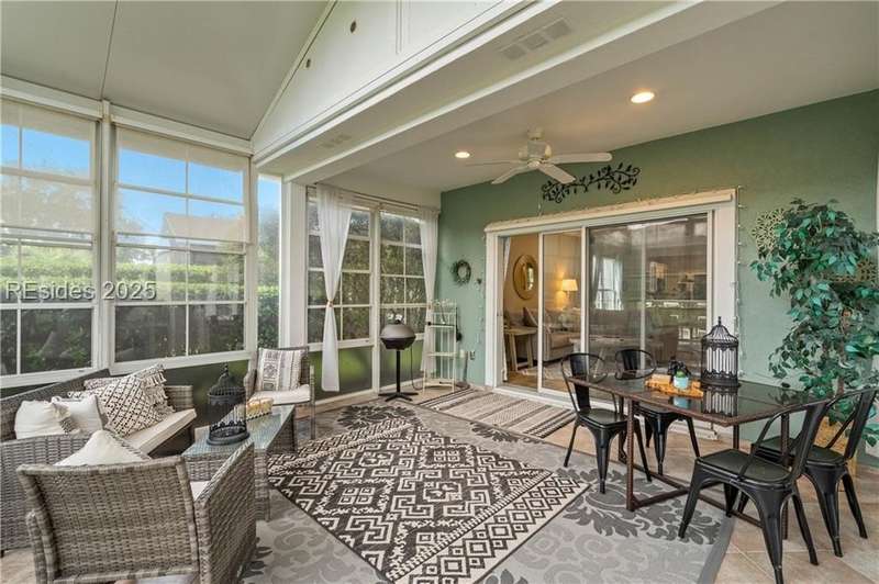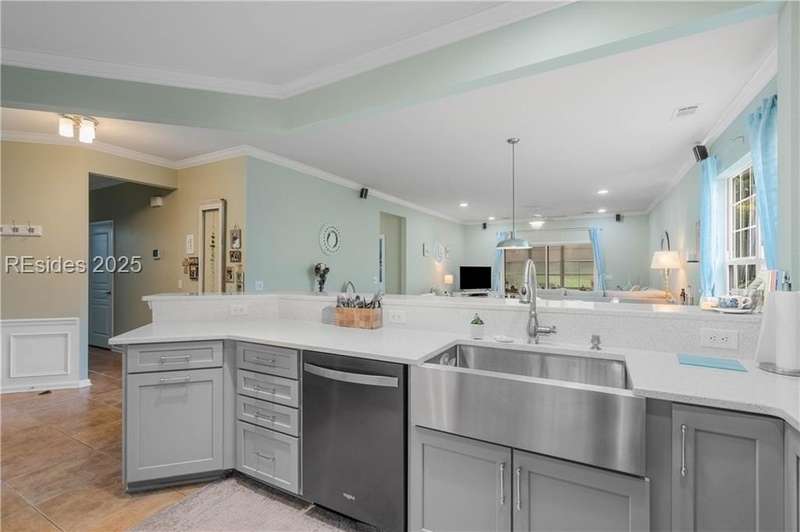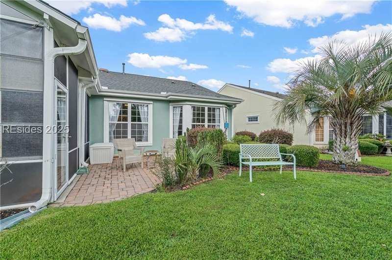 Welcome to 51 Kings Creek Drive Your fully furnished Sun City retreat. Experience Lowcountry elegance in this beautifully updated 2-bedroom, 2-bath home. The stylish yet understated interior features new kitchen appliances, quartz countertops, and a cozy, functional layout. Smooth ceilings and fresh paint make the home sparkle. A Murphy bed in the guest room maximizes space, while the den offers a quiet retreat for work or reading. The tiled family room opens to a screened porch with vinyl windows, leading to an outdoor patio and sweeping golf course views. Home is being sold FULLY FURNISHED including the 2018 ICON Golf cart - which is currently parked in the extended garage. This is a popular Egret model on the north side of 278, but still in Beaufort County with a lower tax rate. New paint outside and inside. 2025 stucco inspection on file with no issues. Move-in ready and impeccably maintained. Enjoy the best of Sun City Hilton Head living. Great location is convenient to Sun City amenities, Town Square, and restaurants