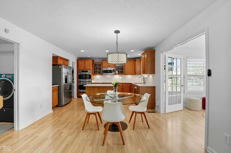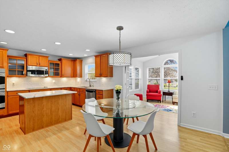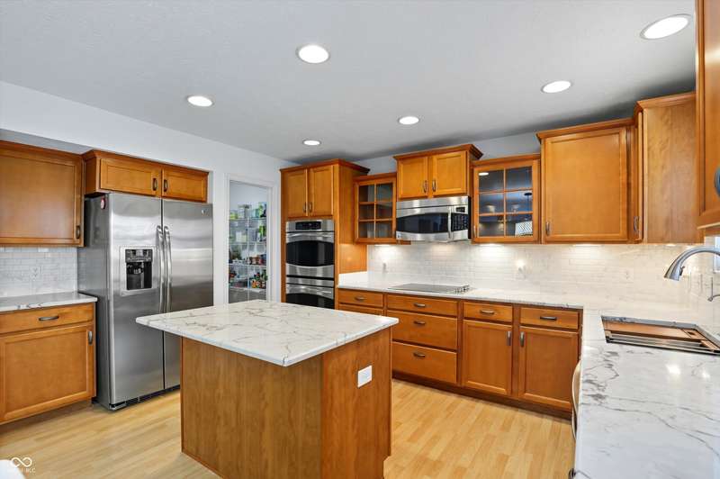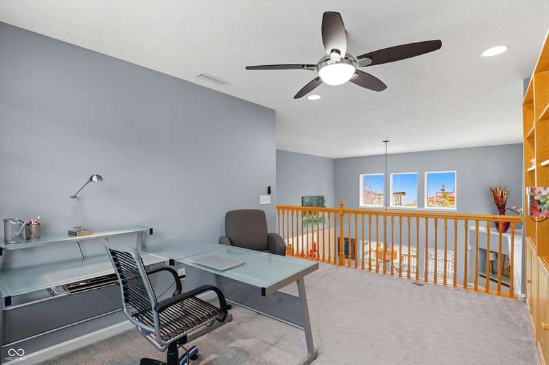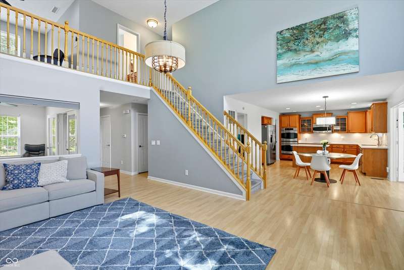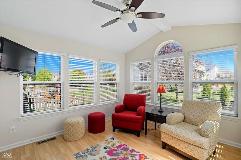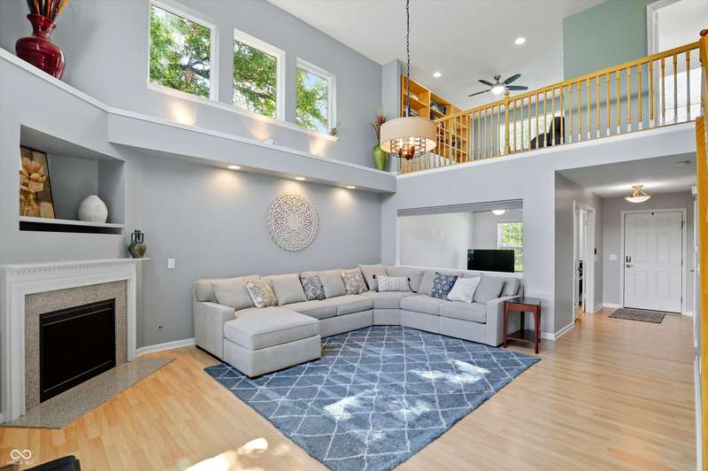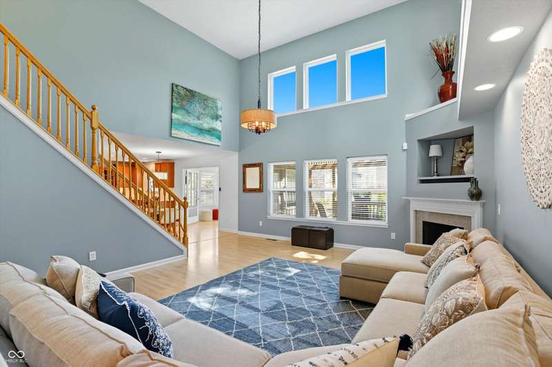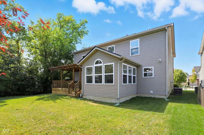 Welcome to this one-owner, beautifully maintained home in the heart of Fishers! Step inside to a grand two-story great room filled with natural light and a cozy gas fireplace. A versatile flex room offers endless possibilities. The gourmet kitchen is a chef's dream with quartz countertops, tile backsplash, stainless steel appliances, double ovens, under-cabinet lighting, and a huge walk-in pantry. The light-filled sunroom with French doors is the perfect spot to relax. Spacious primary suite boasts a tray ceiling, large walk-in closet, and ensuite bath with dual sinks, whirlpool tub, and private water closet. Upstairs, the loft overlooking the great room provides an ideal home office or study space. The full unfinished basement, complete with bathroom rough-in and egress window, is ready for your personal touch. Outdoors, enjoy entertaining on the large deck with pergola. Washer and dryer included. Roof replaced in 2024! All of this in a prime location-minutes from Hamilton Town Center, dining, shopping, the interstate, and more!