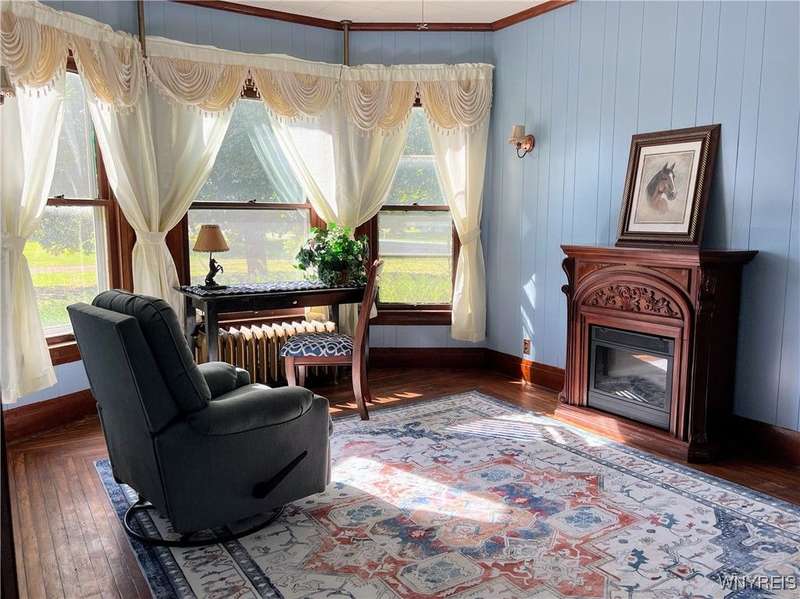 Take a walk in the past in this charming 1913 Victorian farmhouse. Most of the original features have been thoughtfully preserved from the moldings and staircases to the hardwood floors. Each room is spacious. A convenient entry from the driveway to a kitchen mudroom welcomes a full walk-in pantry for all your storage needs. A formal dining-living room and a separate den. Two staircases lend quick access to the second-floor bath and bedrooms, each with ample closet space. A small second floor sitting room is perfect for a home office or craft room. A door leads to the upstairs porch for a serene view of the surrounding orchards and a break from a busy day. A full unfinished walk-up attic is at your disposal for endless possibilities. New carpet throughout the majority of the upstairs hallway and bedrooms make it move in ready. A full basement is the perfect place to do laundry or store homemade preserves. A door to the backyard leads to mature trees and shrubs which beckons for cookouts, croquet contests and outdoor fun! The circular driveway provides easy access to the house and a 35' x 55' foot two-story barn. This is a home for the ages, and you can make it your own for a lifetime of memories.