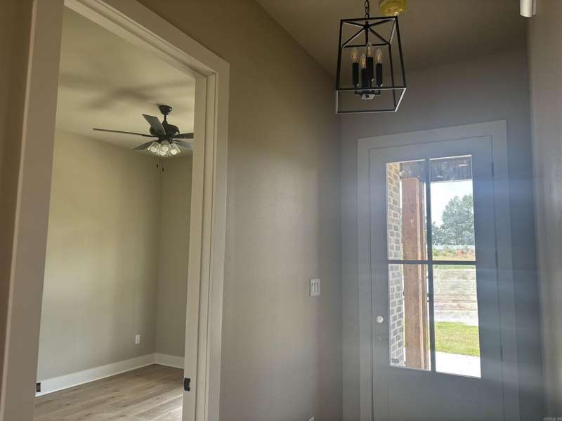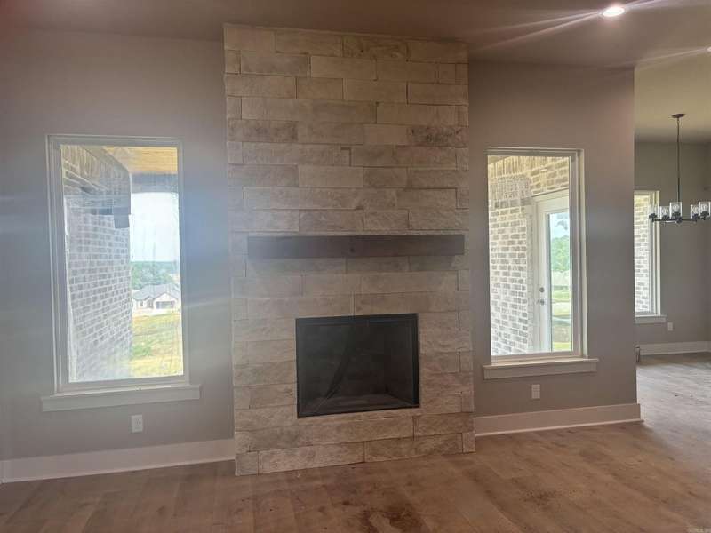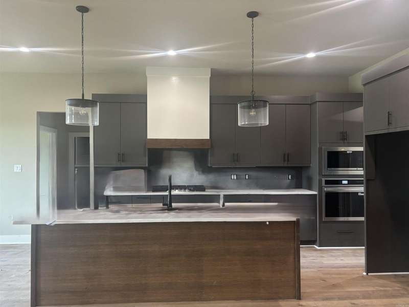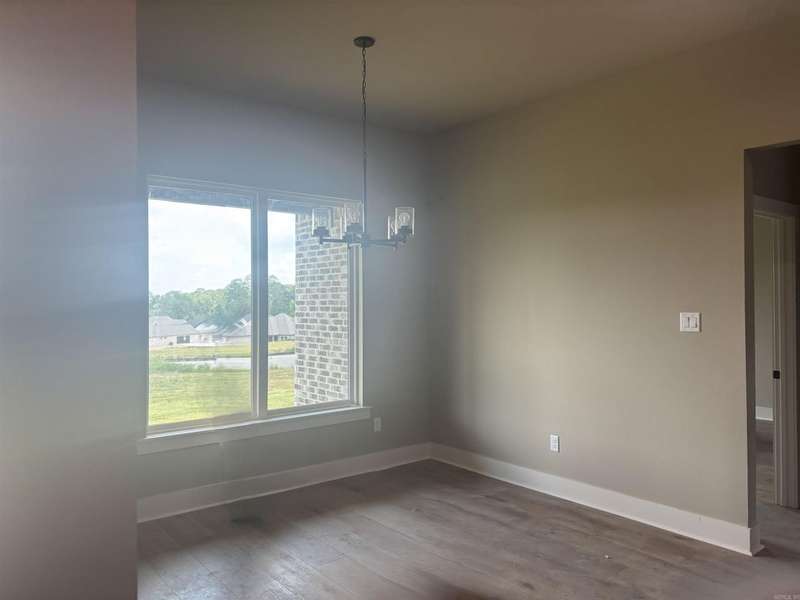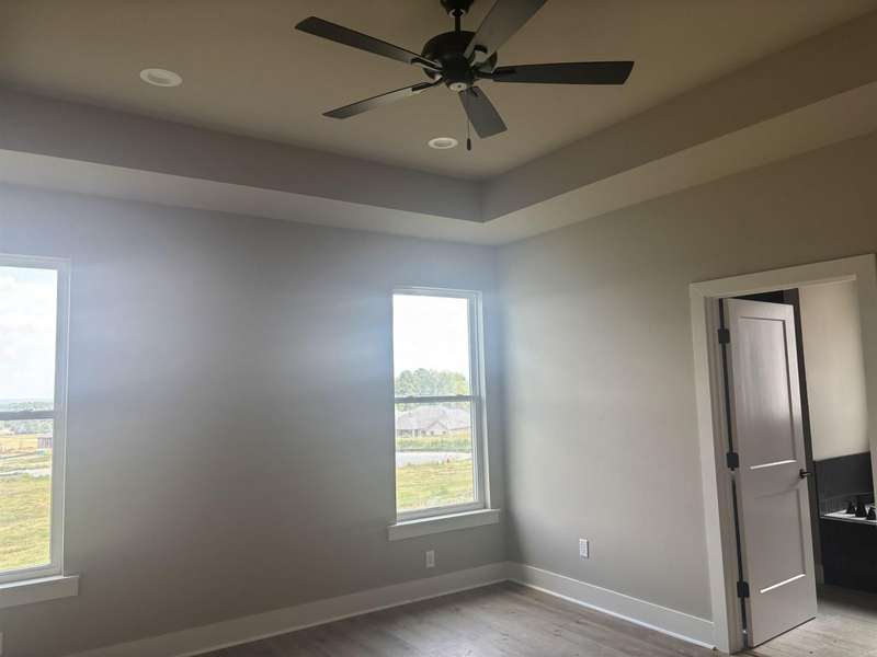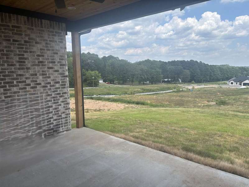 This home has a great view, covered back porch, extra landscaping! Two car garage, Home has LVP flooring, office, great room over looks kitchen with large island, wall oven, gas cooktop, extra large walk in pantry. Primary bedroom has custom ceiling . Primary bath has custom tile shower with free standing tub. Two other bedrooms have bathroom with double sinks. Bedroom upstairs with full bath.