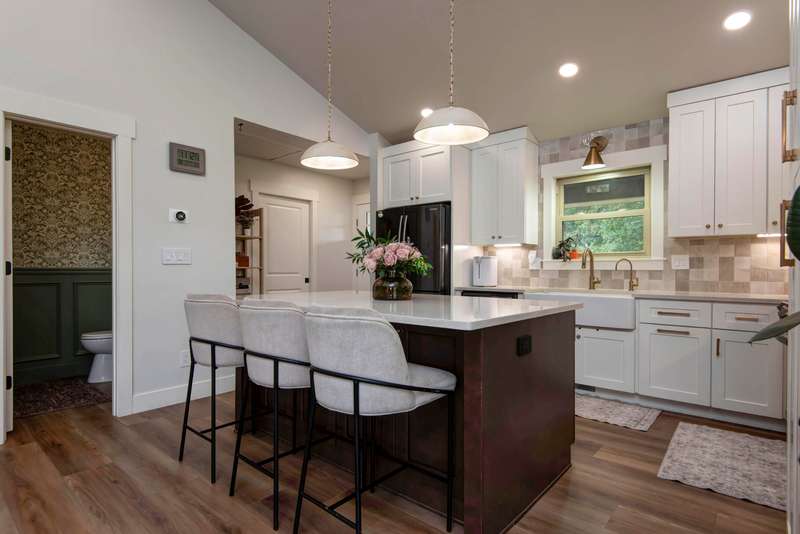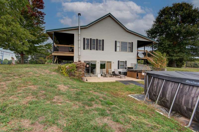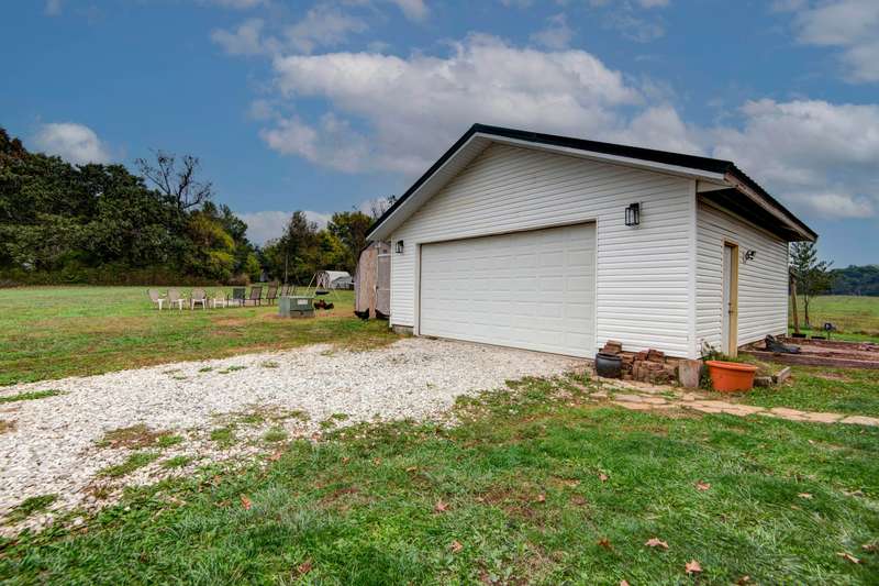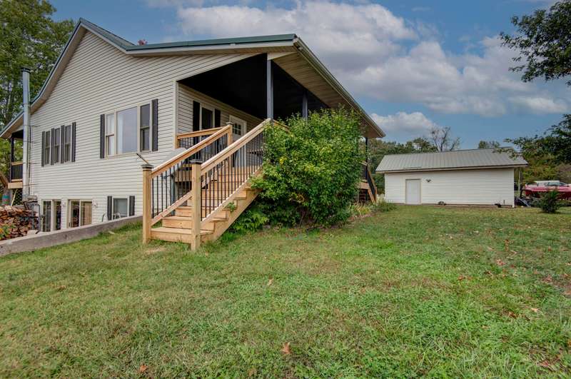 Welcome to this fully remodeled walk out basement home on 3 acres in Ozark! This beautiful country home offers 4 bedrooms, 3.5 baths, 2 living areas and a detached 2 car garage. Open floor plan with vaulted ceilings and lots of natural light. The kitchen is every chefs dream, with beautiful custom cabinets, quartz counters, custom hood, tiled backsplash and pantry. Spacious master bedroom is on the main level with 3 additional bedrooms in the basement. Enjoy the comfortable family room in basement with a woodburning stove. Relax on the front or back porch and watch those beautiful sunrises and sunsets or cool off in the above ground pool during the summer months. This house is move-in ready and has so much to offer! Great location and no restrictions or HOA! Call today for your private showing!