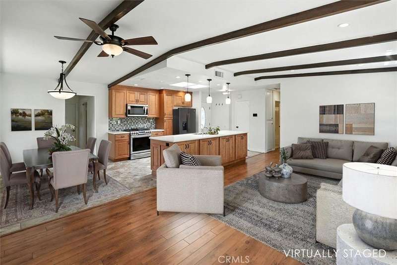 Corner Lot Home with No HOA, No Mello Roos! Nestled on a quiet cul-de-sac, in Serena Park Estates, this energy-efficient home includes an attached, but separate SUITE with its own Private Entrance (see blue area of Floor Plan). The Main Home is remodeled with an Open-concept Living, Dining, and Kitchen areas - Perfect for Entertaining • Three bedrooms and Two Bathrooms • Large Walk-in Pantry and dedicated Laundry Room • Lennox Smart Thermostat and High-Efficiency Heat Pump for A/C & Heating • Whole-house Fan for added energy efficiency • Newer Attic Insulation. Roof only 11 years old • Ceiling Fans in all Bedrooms and Living Room • Fully Owned Solar System with 22 panels + Two Tesla Power Walls • Two Tankless Water Heaters • Reverse Osmosis Water Filtration • Low-maintenance Front Landscaping with Drip Irrigation • 12 Fruit Trees including Lemon, Lime, Apple, Pomegranate, and Fig • Backyard lawn with Raised and Terraced Vegetable Gardens • Hardscape Pavers • Expansive Entertainer’s Covered Patio and a custom Event Canopy for year-round Hosting. The additional attached Suite is ideal for Multi-Generational Living, Guests, or Rental Potential. This Suite is attached to the Main House, but has a Separate Private Entrance, with an option to integrate into the main home through an interior door • Nice-sized living area and Separate Bedroom with Walk-In Closet • Fully accessible design with 35” Doorways. Grab Bars in Walk-In Shower • Kitchen has Refrigerator, Microwave, Dishwasher, and Reverse Osmosis Water Filtration • Dedicated full-size Washer and Dryer • Tankless Water Heater for the Suite area. Conveniently close to the 14 Freeway, and the New Shopping & Dining Center off Golden Valley Road including Kohls, Target, Starbucks, Lowes, Trader Joe’s, Dollar Store, Popeye’s, UPS, AT&T, Chili’s, and more! Street parking is allowed in the neighborhood. This is a true gem!