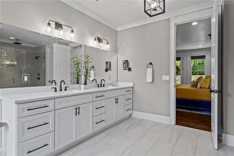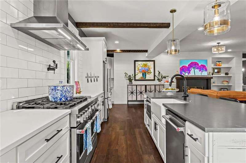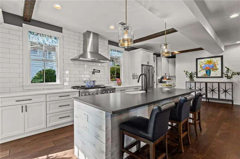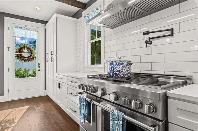 Welcome to 53 Maple Street, a bright, sophisticated, and magazine-worthy residence in the heart of Roswell's Historic District. This custom home blends timeless design with smart upgrades and unmatched walkability to Canton Street, Roswell Square, Vickery Creek trails, and the Chattahoochee National Park. Situated on a beautifully landscaped corner lot, the home offers multiple outdoor living spaces, including a front porch with a charming swing bed, a private courtyard with a water feature, upgraded turf, stone pavers, and landscape lighting on WiFi timers. The interior is equally stunning, filled with natural light and styled with designer lighting, hardwood and tile flooring throughout, wood-beamed ceilings, shiplap accents, and casement windows. The chefs' kitchen features Silestone quartz and charcoal soapstone countertops, a large island with farmhouse sink, 48" KitchenAid Pro gas range with griddle, vented hood, built-in refrigerator and dishwasher, custom pull-out pantry shelving, and utility storage under the stairs. The main-level primary suite offers courtyard access and a spa-style bath with a freestanding tub, frameless glass shower with four heads, quartz-topped vanities and premium fixtures. Upstairs, you'll find four generously sized bedrooms, including a well-appointed en suite-each enhanced with designer lighting and custom Bali window treatments. A versatile loft retreat just off the secondary bedrooms provides the perfect space for guests or family to relax, unwind, and feel right at home.The oversized two-car garage features epoxy floors, a built-in wash sink, adjustable shelving, Tesla/NAC charger, and WiFi-enabled garage doors. Smart home features include Google Nest and Camius motion-detecting cameras, WiFi-enabled lighting and shades, keypad entries, tankless water heater scheduling, and spray foam insulation over the garage. Every detail in this home has been thoughtfully curated to inspire-from everyday functionality to swoon-worthy design moments-making it one of Historic Roswell's most elegant and turnkey opportunities. ***Boutique Design. Premier Location. Effortlessly Roswell.