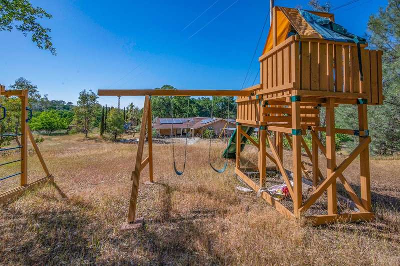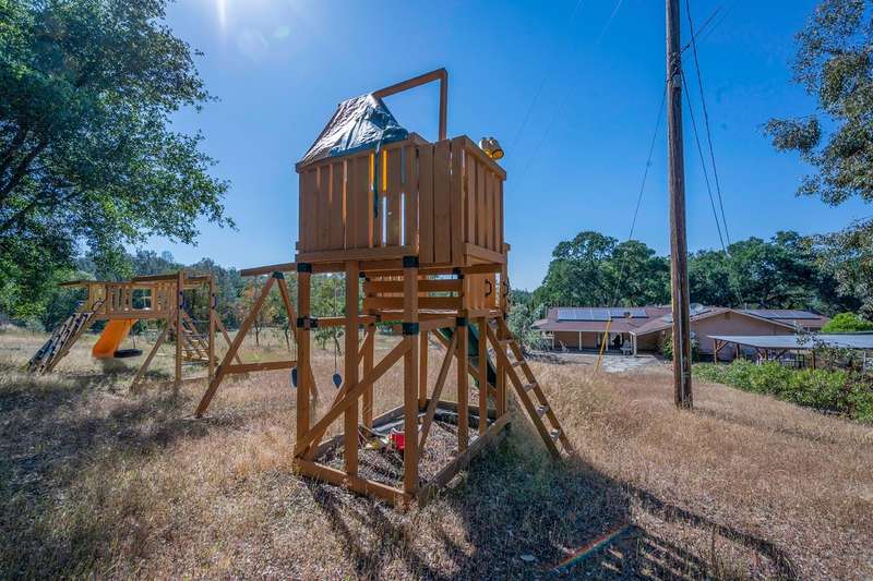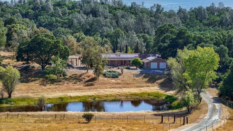 Welcome to your private 22.95-acre retreat in picturesque Campo Seco, Calaveras County. This 4-bed, 3-bath, 2,534 sq ft home offers the perfect blend of space, privacy, and connection to nature. A Tesla solar system (assumable lease, 10 years left) powers the entire home and generates PG&E credits of $1,500+ annually, with a fixed $343 monthly bill efficient and cost-effective. The spacious family room features vaulted ceilings and a wood stove with a wrap-around stone hearth, ideal for cozy evenings. A $7,000 bedroom flooring credit is included to make it your own. Refrigerator included; piano optional. Enjoy outdoor amenities like a koi pond, scenic lookout tower, basketball, a gazebo, two play structures, hot tub off the back deck, and a year-round pond. One well services the home with a 3,000-gallon reserve tank; a second well is drilled for a future pool or second residence. Extras include septic, extended 2-car garage, flood/motion lights, and multiple storage buildings including a 40-ft Conex container. Minutes to Valley Springs and lakesNew Hogan, Camanche, Pardee, Amador, and Bear Riverthis is a haven for outdoor enthusiasts. Convenient to gold country towns like Angels Camp, Murphys, Jackson, Amador City, and Sutter Creek, for shopping, dining, and wineries.