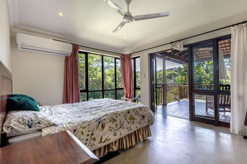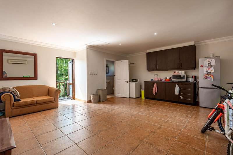 This modern 4-bedroom home, complete with a separate 2 bedroom flatlet, offers the ideal blend of comfort, functionality and lifestyle within the sought-after Seaward Estate. Step into a bright and airy living area with a striking double-volume ceiling that creates an immediate sense of space and light. Upstairs, the main house features two en-suite bedrooms, both fitted with fans and air conditioning. The master suite opens onto a balcony with scenic views over a protected conservancy, while the modern kitchen is finished with granite tops, a gas stove and a separate scullery. The lounge flows seamlessly through stacking doors onto a large balcony with a built-in braai ?Çö perfect for entertaining. Downstairs includes two additional bedrooms with a shared bathroom, as well as a cosy lounge area. Stacking doors open onto a covered patio with a second built-in braai, ideal for relaxed family living. Extra storage space is also available under the staircase. The home enjoys a generous garden and sparkling swimming pool, while the garage with laundry fittings comfortably accommodates four large vehicles. Additional driveway space allows parking for up to six cars. Above the garage is a spacious 80 square meter flatlet with two bedrooms, a bathroom, kitchen, and large living area. With its own electricity meter and current rental income of R11,000 per month, it offers excellent investment potential. Seaward Estate provides 24-hour manned security, electric fencing, well-maintained roads and tranquil surroundings. Pet-friendly and community-focused, the estate also offers walking trails and parks, all just minutes from Netcare Alberlito Hospital, Ashton International College and both Lifestyle and Junction Malls.