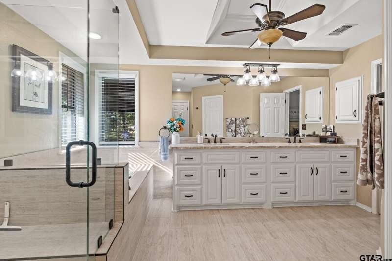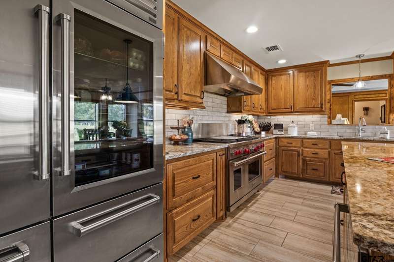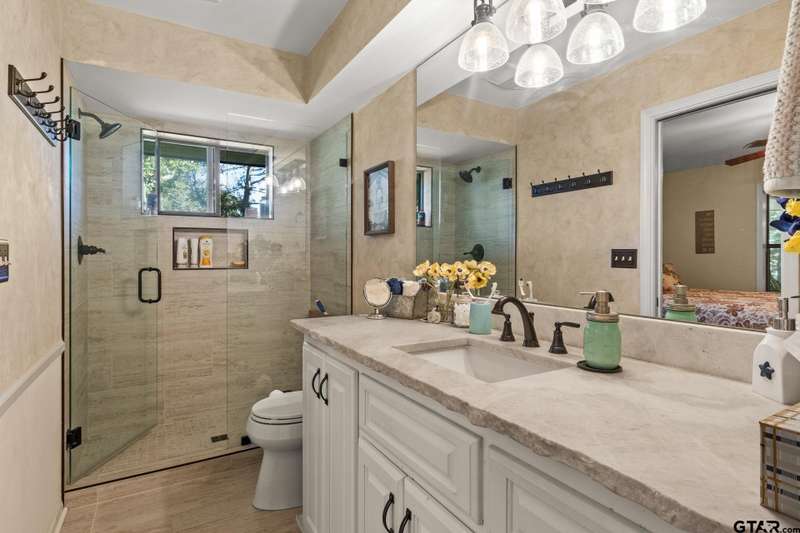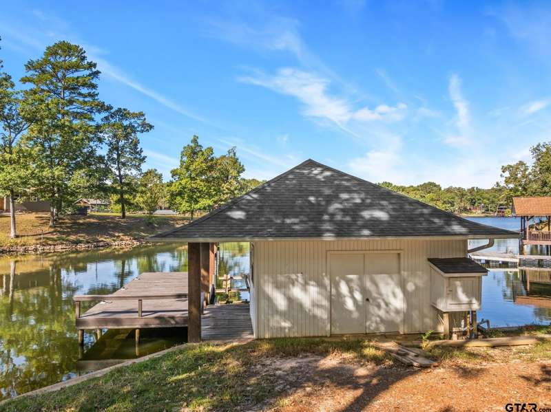Nestled in the prestigious Meadow Lake Estates on Lake Bob Sandlin, this exquisite waterfront property is a luxurious sanctuary. Sprawling over 2,150 square feet, this home is designed for those who love to entertain. The spacious living room is a focal point, featuring a stunning recessed ceiling and a cozy wood-burning fireplace. The chef-inspired kitchen is equipped with top-of-the-line Wolfe and Sub-Zero appliances, a sprawling island, and elegant granite countertops — perfect for hosting gatherings and preparing meals in style. The primary suite offers breathtaking views of Lake Bob Sandlin and features a spa-like ensuite bath with dual sinks, a soaking tub, and a glass shower. The secondary bath is conveniently accessible from both the hall and guest bedroom, ensuring privacy and comfort for all. Additional premium features include a storm room for peace of mind, a whole-home backup generator for uninterrupted comfort, and a bug misting system that allows you to enjoy your outdoor spaces year-round. The boathouse is a water lover’s paradise, complete with lifts for two jet skis, a personal watercraft lift, and a tanning deck — the ideal setup for endless lake days. End your evenings on the screened porch, soaking in the sunset over the water. With ample parking and a concrete driveway, this home was designed for entertaining family and friends in true lakefront luxury. Don’t miss the chance to make this dream lake house your own — schedule a showing today!