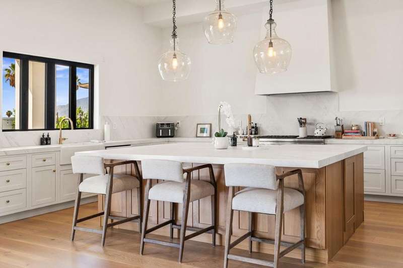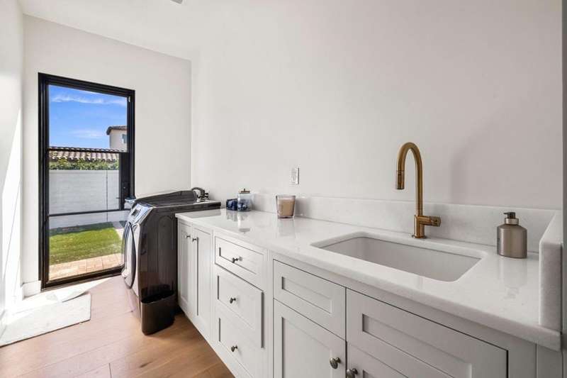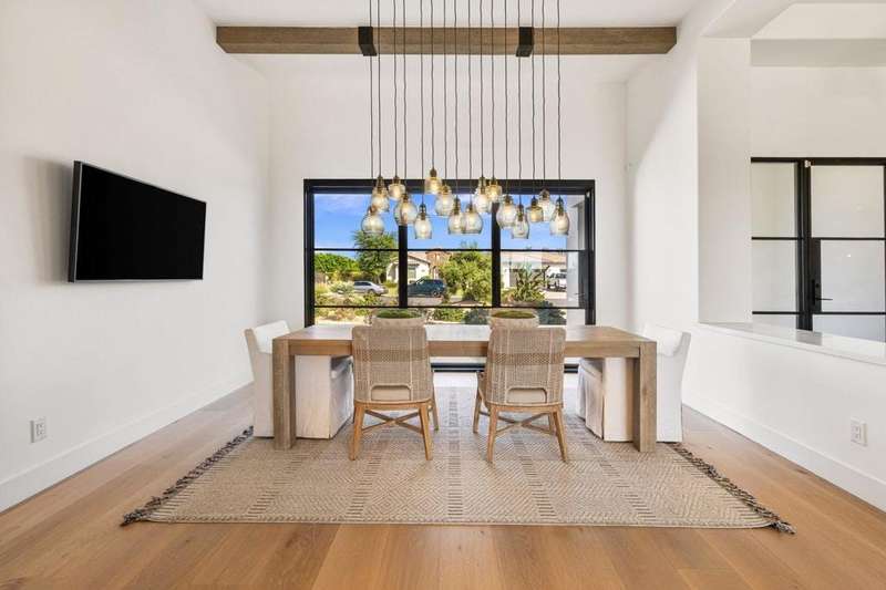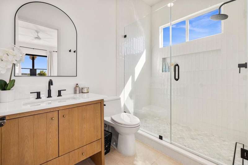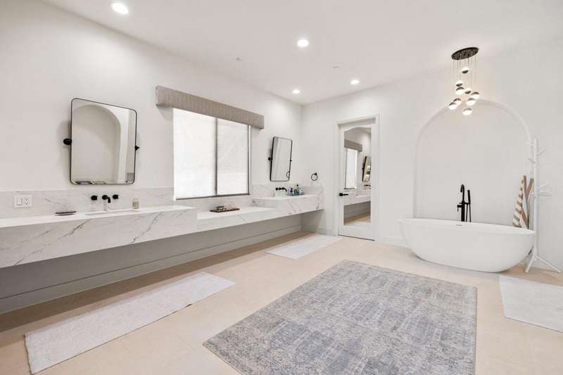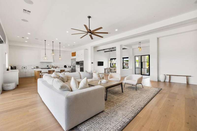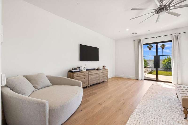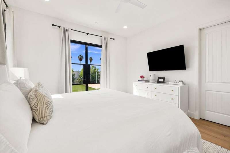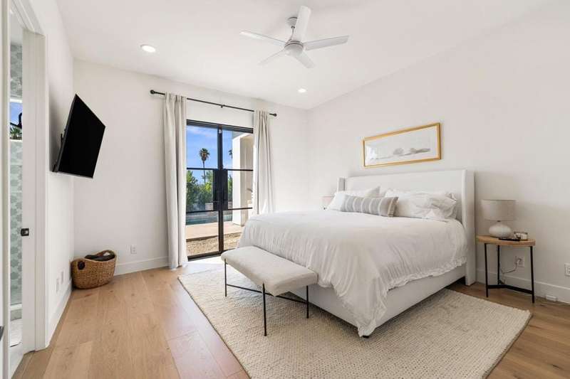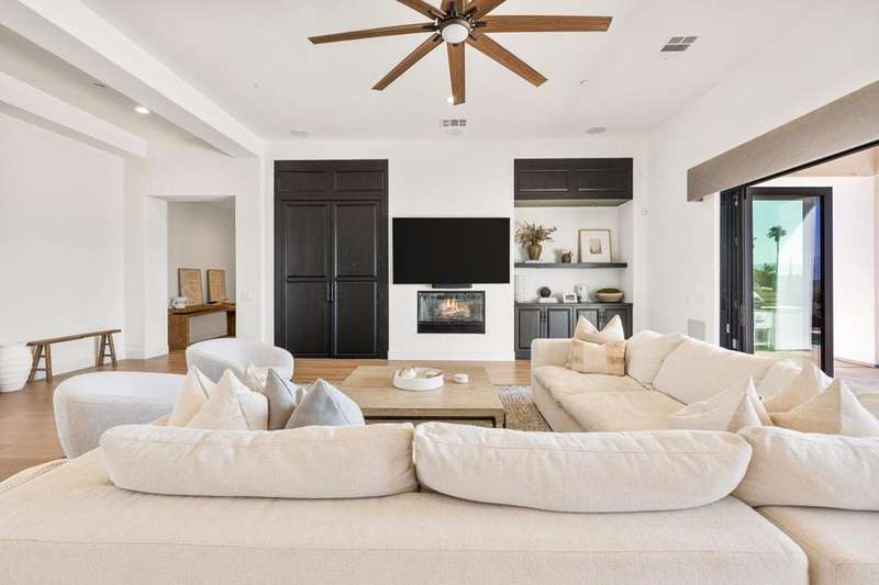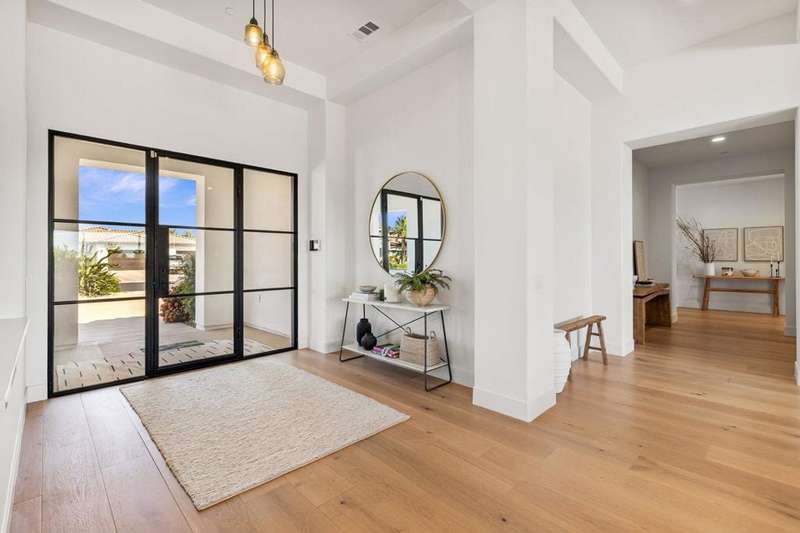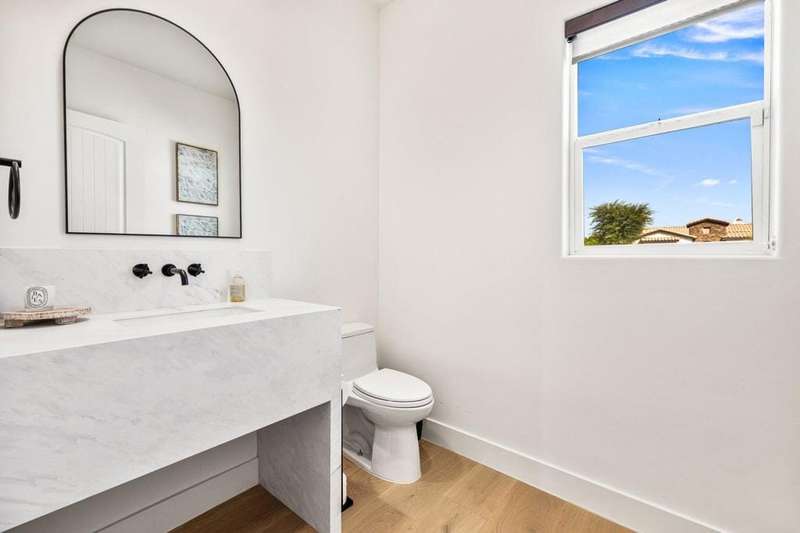 Welcome to your private desert sanctuary--a fully reimagined, design-forward escape just minutes from Old Town La Quinta, El Paseo, and walking distance to Coachella and Stagecoach. Taken down to the studs and rebuilt with purpose, this expansive single-level modern home seamlessly blends architectural sophistication with ultimate indoor-outdoor living.Inside, soaring ceilings and oversized black-framed pocket doors flood the space with natural light. The open-concept layout flows across wide-plank engineered white oak floors into four spacious en-suite bedrooms. The oversized primary suite is a true retreat, featuring spa-quality finishes, dual vanities, and direct patio access.Outfitted with a state-of-the-art Crestron smart system, the home offers effortless control of lighting, audio, climate, and media. With 8 smart TVs, zoned sound, and high-speed Wi-Fi, every space is designed for both relaxation and connection.The heart of the home opens to a resort-style outdoor living space with a custom pool and elevated spa, expansive built-in fire pit under the desert sky.Built-in BBQ for seamless al fresco dining. Private half basketball court for play or morning workoutsWhether you're entertaining or simply unwinding, this property offers the perfect balance of privacy, technology, style, and location. Just minutes from La Quinta Resort, world-class golf, and scenic desert trails--this is desert living, redefined.